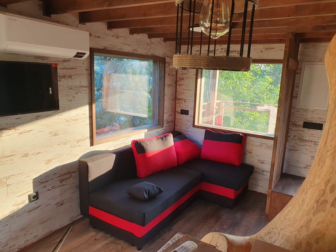 Ponúkame Vám na predaj dom na STROME. Ide o novostavbu v obci Valentová (13 km od Martina a 14 km od kúpeľného mesta Turčianske Teplice).Obývacia izba: 450cm x 350cm Spálňa: 610cm x 420cmTerasa: 450cm x 230cmVýška štítu: 11,5mKonštrukcia z hranolov,Hrúbka stien: 18cm (zateplené)Elektrický krb - 1.5 - 2.5kWKlimatizácia - 3.5kWWC - karavanovéStrážené kamerovým systémom.Vlastná parcela pod stromodomom. Parkovanie pre 2 autá.Možnosť dohody obslužného personálu. Nachádza sa v peknom a kľudnom prostredí v areáli ranča a v prípade záujmu je tu možnosť mať aj vlastného koňa.Voľná je ihneď.CENA DOHODOU
