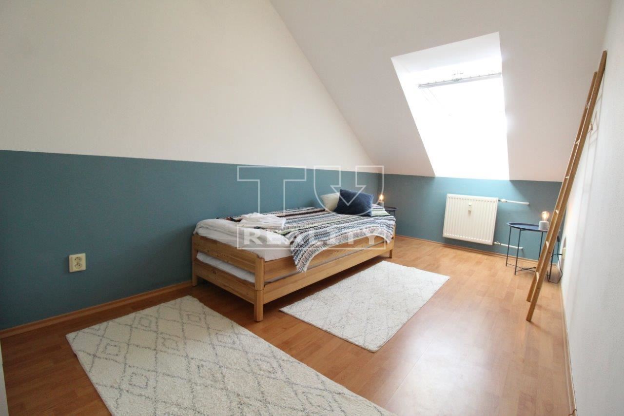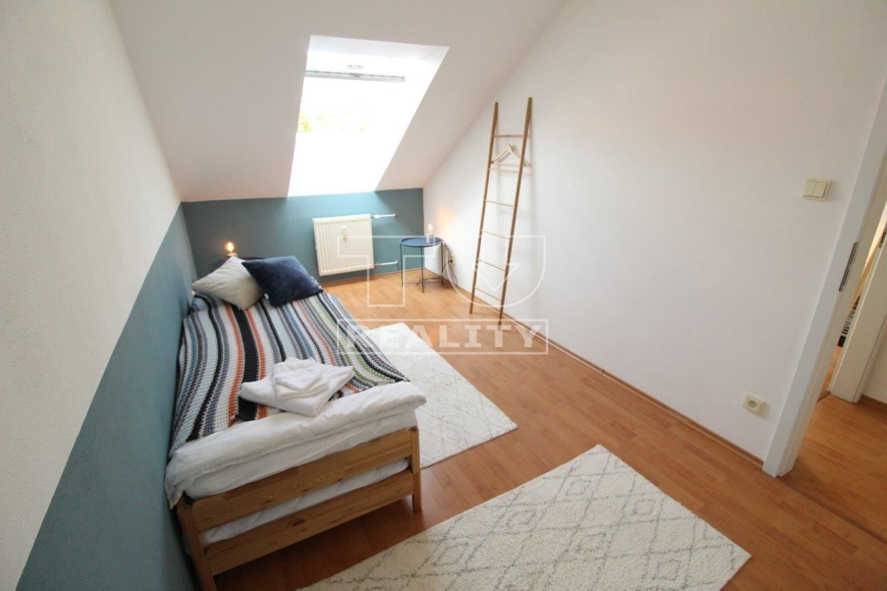 VÝHRADNE V PONUKE TUreality NA PREDAJ PERFEKTNÝ DVOJPODLAŽNÝ MEZONETOVÝ TROJIZBOVÝ BYT S KRBOM, LOGGIOU, PIVNICOU A PARKOVACÍM STÁTÍM V SUTERÉNE, KTORÝ SA NACHÁDZA PRIAMO V CENTRE MESTA POPRAD.________________Skôr než si začnete prezerať fotografie, skopírujte si nasledujúce linky, vložte do vášho prehliadača a pozrite si videoprehliadku a 3D prehliadku bytu: ▶ PONUKA NA WEBE: ▶ VIDEO TU: ▶ 3D PREHLIADKA TU: ▶ BYT o celkovej výmere 105,3 m2 je na 3 a 4. poschodí v modernom bytovom dome s výťahom a podzemnou garážou. K bytu prislúcha LOGGIA, PIVNICA A PARKOVACIE STÁTIE V PODZEMNEJ GARÁŽI POD BYTOVÝM DOMOM !!! Bytový dom novšej generácie s výťahom je zateplený s plastovými oknami, nové dorozumievacie zariadenie s čipom, telefónom a ovládaním elektronického vrátnika, elektrické automatické vráta do podzemnej garáže. Vyhradené uzavreté parkovisko pre obyvateľov priamo pred bytovým domom - vstup cez rampu s čipom. V podkroví bytu sú vymenené nové strešné okná Velux s izolačným trojsklom a roletkami. Na ostatných oknách sú žalúzie.▶ MIESTNOSTI: obývačka, kuchyňa s jedálenským kútom, špajza, 2x chodba + schodisko, 2x izba, 2x kúpeľňa s WC, 2x sklad, loggia, pivnica 2,59m2, parkovacie miesto 11,8m2.▶ DISPOZÍCIA: Vstup cez spodnú - dennú časť cez chodbu popri schodisku do veľkej obývacej izby s krbom, prepojenej širokým prechodom s kuchyňou, jedálenským kútom a špajzou. Denná časť má vlastné WC s umývadlom a aut. práčkou. Pod schodiskom je malá miestnosť, pre odkladanie bicyklov, príp. lyží. Nočná časť na poschodí je prepojená schodiskom do chodby z ktorej sa vstupuje do dvoch podkrovných izieb, kúpeľne s dvoma umývadlami, vaňou a WC a do ďalšej miestnosti bez okna, ktorá slúži, ako sklad. V strope je výlez so sklápacím schodiskom na povalu, kde je ďaľší úložný priestor. Orientácia bytu juhozápad. ▶ Náklady: 277,-€/mes. správa byt. domu vrátane upratovania spol. priestorov + 30,-€ spotreba elektriny.▶ V cene bytu ostáva kuchynská linka so sporákom a digestorom. Ostatné zariadenie podľa dohody.▶ Parkovanie v podzemnej garáži, alebo priamo na pozemku pri bytovom dome na uzavretom parkovisku. V okolí najlepšia kompletná občianska vybavenosť. Centrum 5 min. pešo, železničná stanica 350m... Bezproblémoví susedia. ▶ IS: Elektrina, ver. vodovod, kanalizácia, vykurovanie ústredné panelovými radiátormi s termostatickými hlavicami z centrálnej kotolne spolu s TÚV, internet. Energetický certifikát "B". ▶ LOKALITA: Byt sa nachádza v príjemnom prostredí centra mesta. Z hľadiska pozície je v jednej z najvyhľadávanejších lokalít (nie len) na Slovensku čím vytvára kompromis medzi bývaním v meste a zároveň v centre cestovného ruchu, čo zvyšuje potenciál bytu aj na komerčné - rekreačné využitie, alebo prenájom. Pohorie VYSOKÉ TATRY, AQUAPARK AQUACITY POPRAD, + okolie mesta ponúka z hľadiska cestovného ruchu MOŽNOSŤ CELOROČNÉHO VYUŽITIA. Umiestnenie bytu zaručuje kompletnú dokonalú občiansku vybavenosť!_________________▶ OBHLIADKA S MAKLÉROM: ROBERT BELLA - tel. 0905 501679, bella@tureality.sk