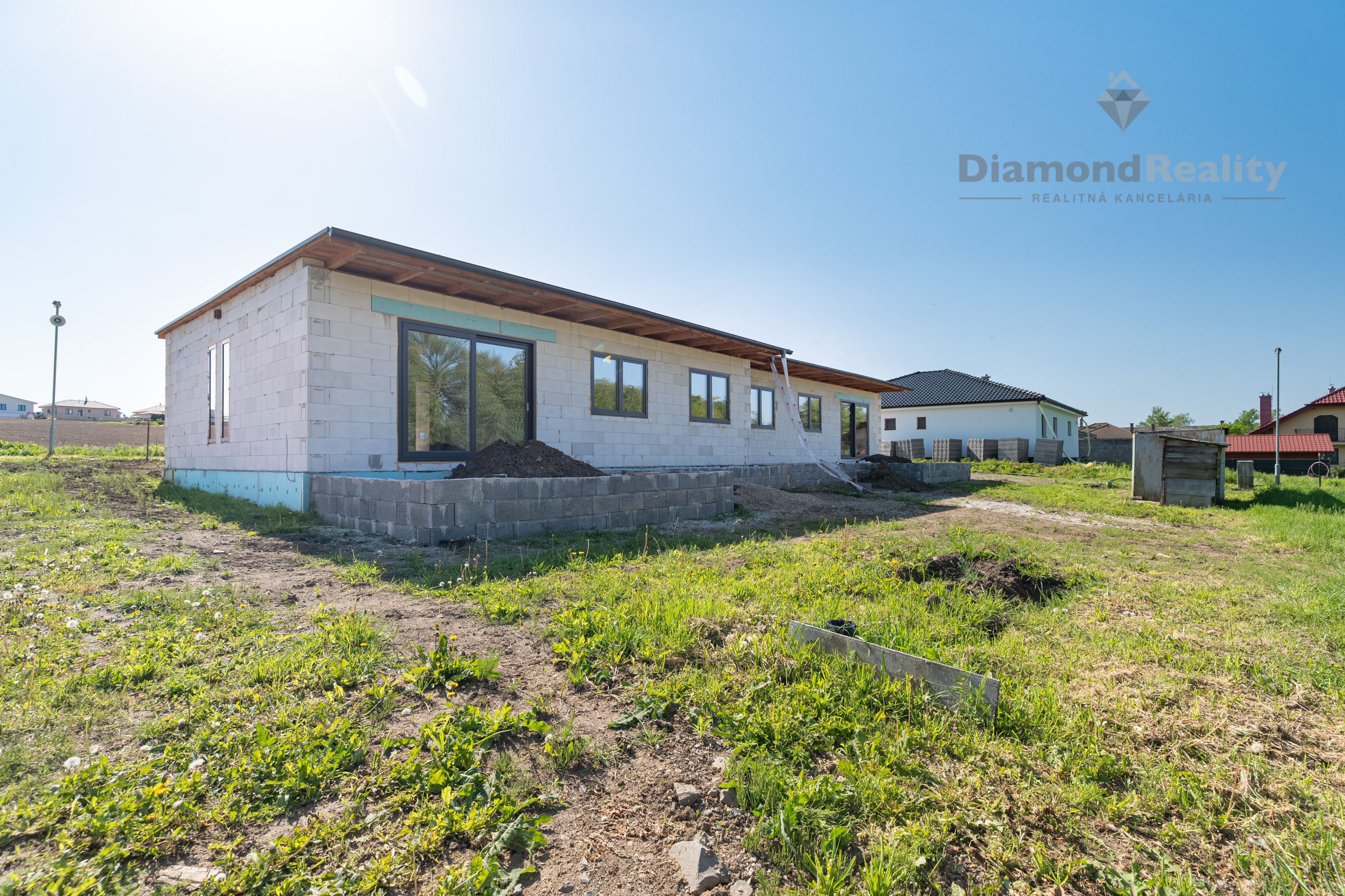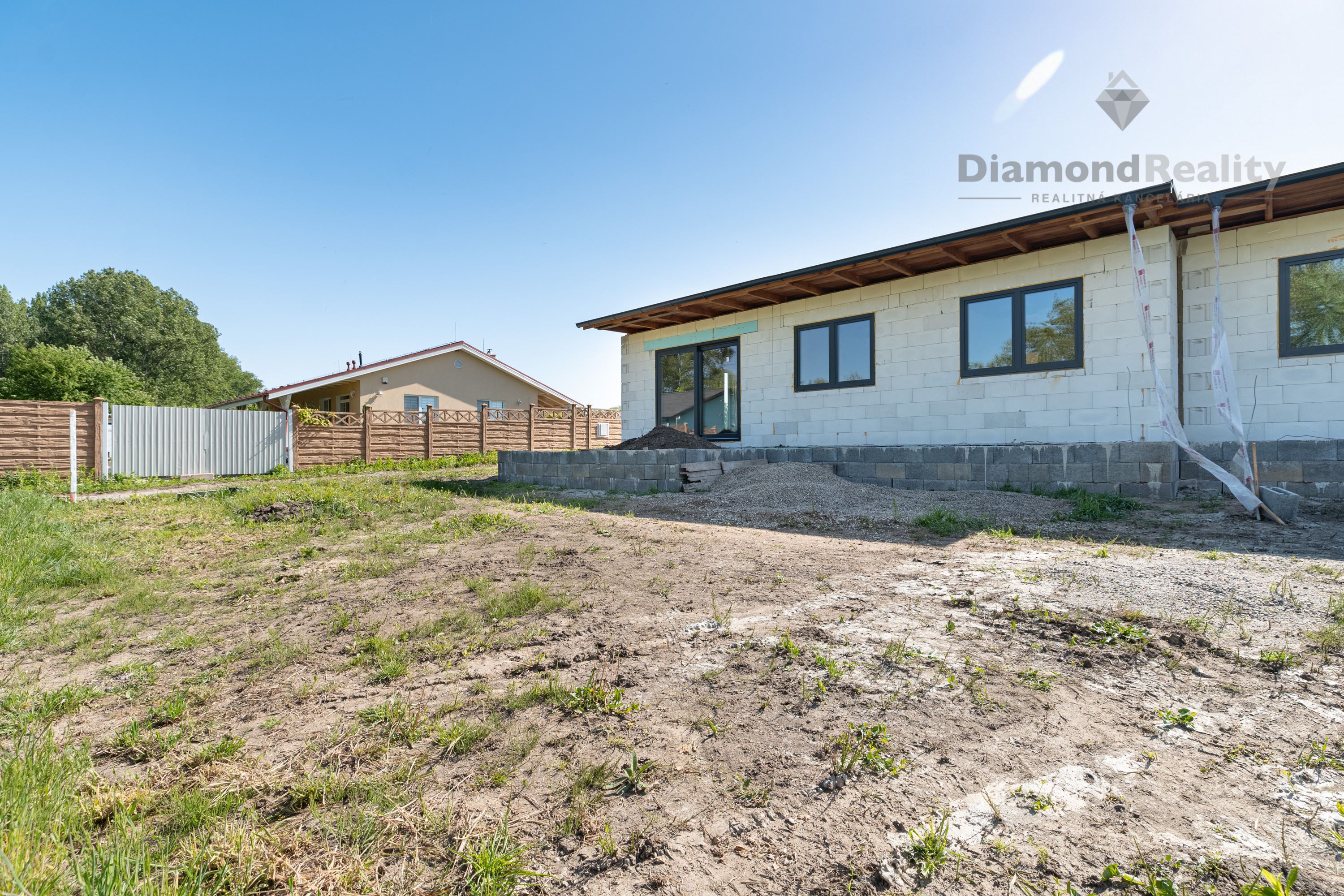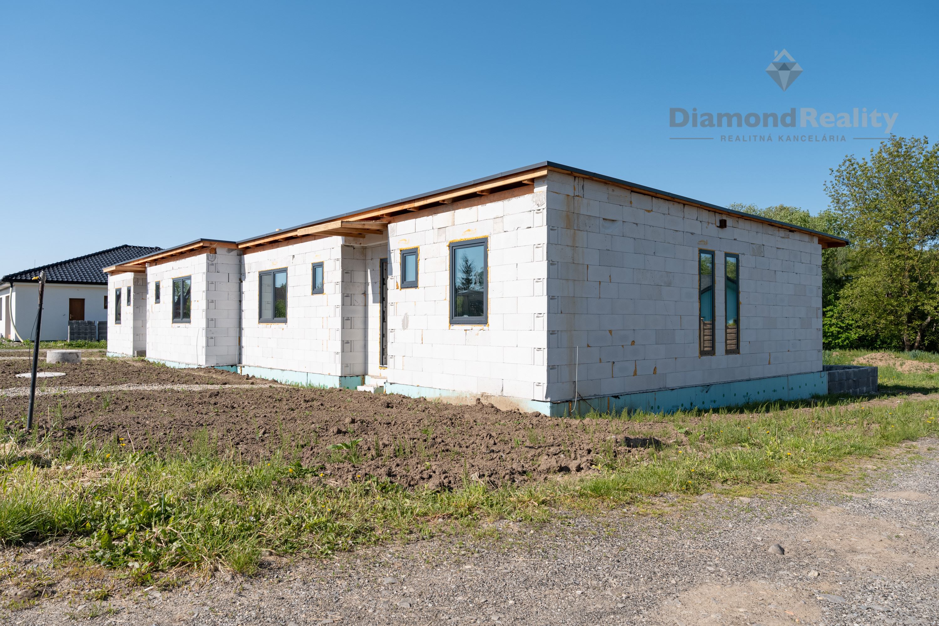Aktuálne je dom pripravený nato, aby ste si ho mohli dokončíť podľa svojich predstáv. V dome sú použité plastové bezpečnostné dvere a okná (3sklá) v antracitovej farbe, strecha je plochá pokrytá izolačnou fóliou. Pred každým domom je už el. skrinka, prípojka na plyn a zasypaná betónová žumpa. V zadnej časti domu je vyvrtaná studňa. V prednej časti domu máte k dipozícii predzáhradku o výmere cca 40m2 a v zadnej časti domu pozemok o výmere 150m2. Zadná časť pozemku je orientovaná na západ a tak máte zabezpečené slniečko po celý deň a môžete si ho užívať pri grilovačke s priateľmi či s deťmi v bazéne.