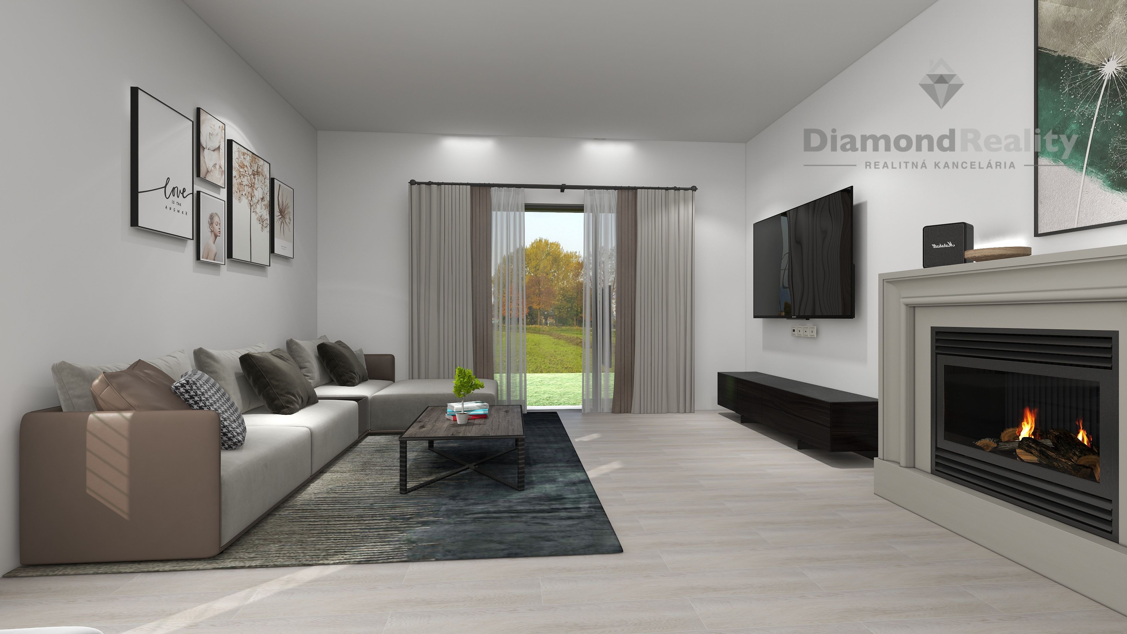 Každý z domov je totožný, akurát zrkadlovo otočený a spojený je v časti, kde sa nachádza kúpeľňa a spálňa. Domček má podlahovú plochu 92m2 a dispozične je rozdelený tak, že vám tu nič chýbať nebude. Po vstupe do domu sa ocitnete v chodbe s priestorom na lavičku a vstavanú skriňu, samostatné WC, technická miestnosť, 2x detská izba (11,5m2), 1x spálňa (13m2), kúpeľňa so sprchovým kútom a WC a denná časť, ktorú tvorí kuchyňa, jedáleň a obývačka. V obývačke je predpríprava na krb, čo v budúcnosti vytvorí príjemnú atmosféru a teplo domova. Táto denná časť disponuje peknou výmerou 36m2 a je krásne presvetlená oknami po všetkých stránách a navyše je z nej výstup na 26 metrovú terasu. Každý z rodiny tu nájde svoje súkromie, množstvo úložného priestoru vám zabezpečí napr. technická miestnosť či vstavané skrine v každej izbe.