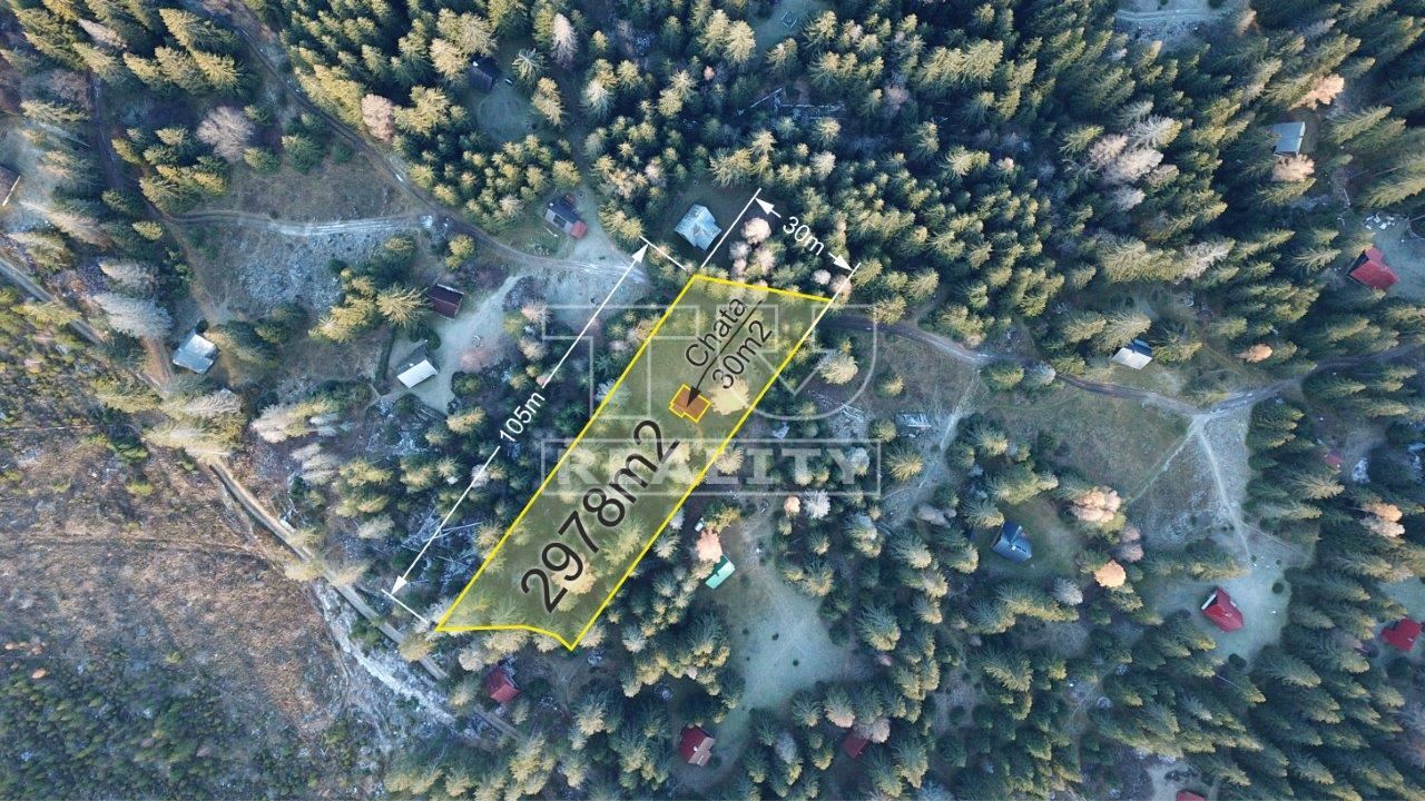 VÝHRADNE LEN V NAŠEJ PONUKE REKREAČNÁ CHATA POD TATRAMI - PODBANSKÉ - PRIBYLINA so zastavanou plochou cca 40m2 na vlastnom pozemku o celkovej rozlohe až 2978 m2 ! _______________________________________________________POZEMOK: Rovinatý pozemok v osobnom vlastníctve 2978 m2 je prístupný autom po nespevnenej lesnej komunikácii. Na pozemku stojí dvojpodlažná rekreačná chata so zastavanou plochou približne 40 m2. ______________________________________________________DISPOZIČNÉ RIEŠENIE: Na 1. nadzemnom podlaží sa nachádza spoločenská miestnosť s kuchynkou a jedálenským kútom. Uprostred miestnosti je veľký múraný krb. Z 1. Nadzemného podlažia vedie schodisko do podkrovia, kde je nočná časť s lôžkami pre 8 osôb. V prístavbe so samostatným vchodom je dreváreň so suchým WC._______________________________________________________IS: Elektrina v dosahu, voda - potok (vyviera povyše chaty), vykurovanie krbom na pevné palivo, suché WC v prístavbe. _______________________________________________________TECHNICKÉ RIEŠENIE: Základy betónové so soklom zvislé nosné konštrukcie zrubová, stropy drevené trámové, drevený krov sedlovej strechy s bituménovou krytinou a pozink. oplechovaním. Drevené palubové podlahy, okná drevené zdvojené s dvojvrstvovým zasklením. Dvere drevené, čiast. zasklené s drevenými zárubňami. _______________________________________________________V cene môže byť aj zariadenie - podľa dohody s majiteľom. Energetický certifikát - nie. Chata je vhodná na rekreačné účely v pôvodnom stave, alebo na rekonštrukciu._______________________________________________________Miesto, kde sa chata nachádza je z hľadiska pozície v lukratívnej a veľmi vyhľadávanej lokalite blízko Vysokých Tatier, s prístupom na diaľnicu D1 - JASNÁ - NÍZKE TATRY. Z hľadiska cestovného ruchu, je zaujímavá pre turistov so záujmom o rekreáciu, lyžovanie a turistiku, termálne kúpaliská (Tatralandia, Gino-paradise), cykloturistyku, zber húb, kúpanie, rybolov, alebo yachting na priehrada Lipt. Mara...+ všetko čo celoročne ponúka Liptov. _______________________ *** V cene kompletný právny servis, poradenstvo...atd. - INFORMÁCIE A OBHLIADKA S MAKLÉROM: ROBERT BELLA - 0905 501679, e-mail: bella@tureality.sk ***