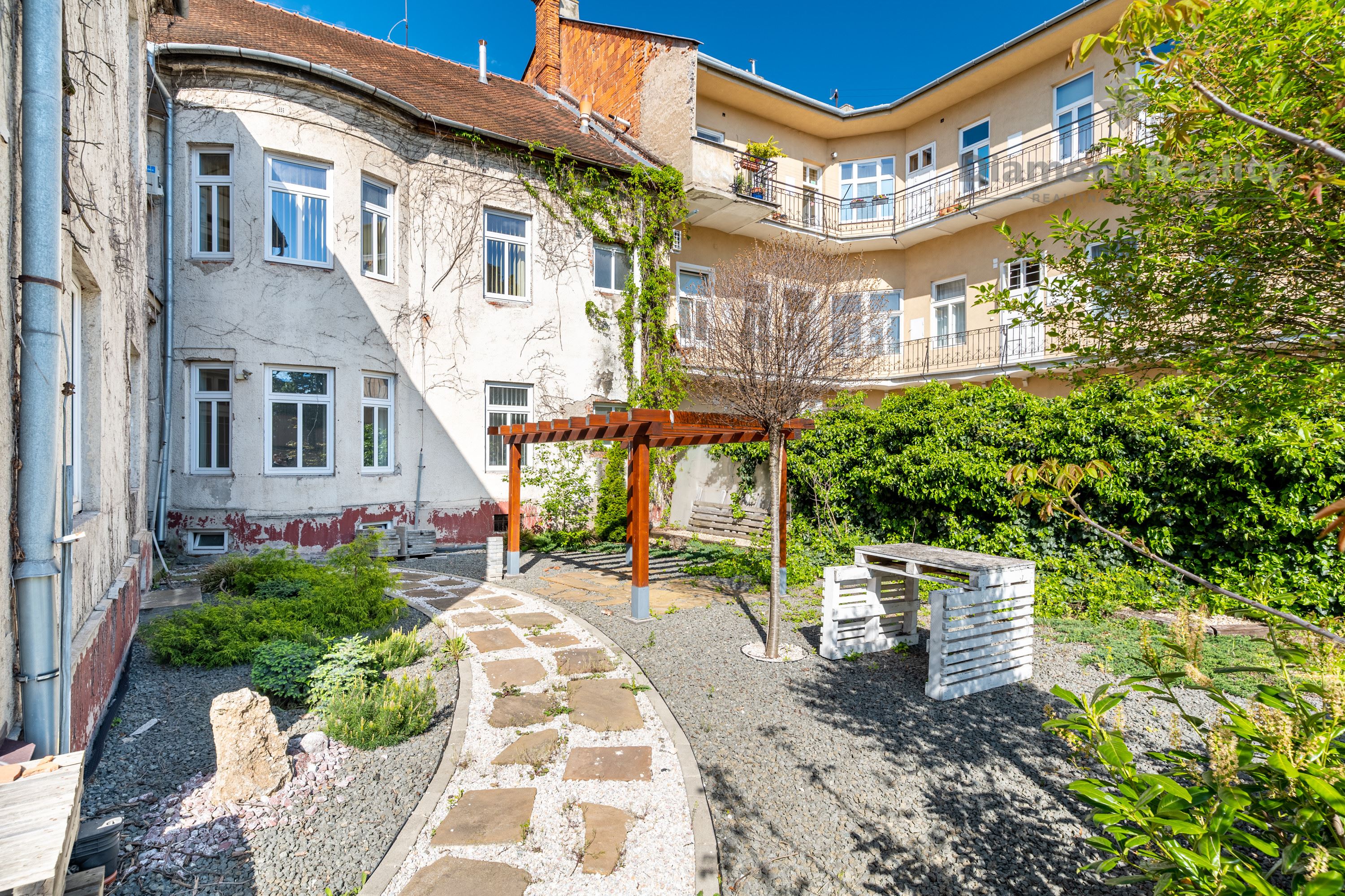 Posledné roky bola budova prenajímaná na administratívne účely a pokojne vám poskytne túto možnosť aj naďalej, no bola by veľká škoda nevyužiť takúto príležitosť. Na základe projektu tu môže vzniknúť 8 luxusných bytov s výmerami od 33m² - 146m². Len si predstavte, ako sa budú predávať tieto luxusné byty v centre mesta, s vysokými 3,9 metrovými stropmi, balkónmi, vonkajším dvorom s bazénom či miestom na grilovanie. Ten má rozlohu 154m². Nakoľko je parkovanie veľkým problémom v rámci developerských projektov v centre mesta, aj takáto možnosť tu je a vo vnútornom dvore môže vzniknúť niekoľko miest na parkovanie.