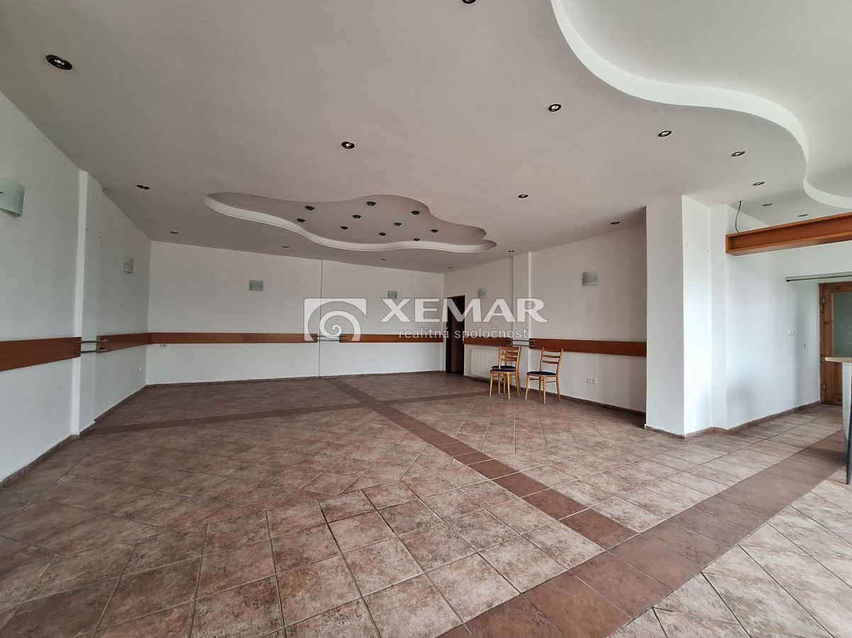 Ponúkame na prenájom reštauračné priestory o výmere 200 m2. Umiestnené sú na prízemí, pozostávajú z dvoch miestností. Menšia časť je využiteľná pre uzatvorenú spoločnosť. K priestorom prináleží terasa, sklad, miestnosť pre personál, toalety. Parkovanie pre personál a zákazníkov je priamo pri objekte. Cena je 800.-eur/mesiac bez DPH, plus energie.