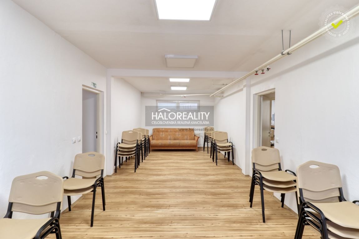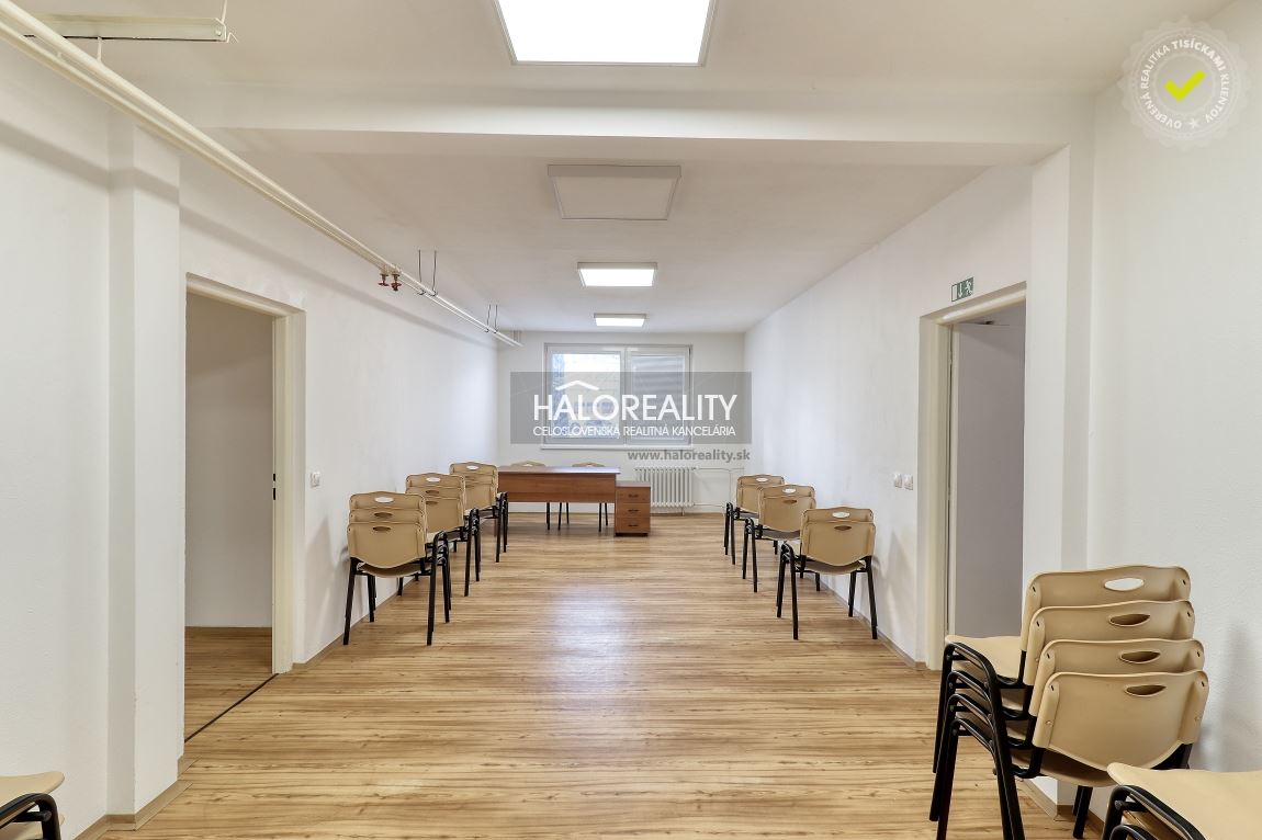Ponúkame na predaj veľký nebytový priestor nachádzajúci sa na prízemí štvorposchodového bytového domu v meste Vrbové, situovaný veľmi blízko centra. DISPOZÍCIA: Nebytový priestor sa nachádza na prízemí bytového domu a vstupuje sa do neho samostatným vchodom. Dispozične pozostáva z menšej vstupnej haly, chodbových priestorov, troch miestností v súčasnosti využívaných ako kancelárie, zasadacej miestnosti, kuchynky, dvoch WC a miestnosti v minulosti využívanej ako zázemie pre zamestnancov a kúpeľňa, aktuálne však ako sklad. Úžitková plocha priestorov je cca 133 m² priestorov. Pre bližšiu predstavu o dispozícii si pozrite našu virtuálnu prehliadku. STAV NEHNUTEĽNOSTI: Objekt je z časti zrekonštruovaný a táto rekonštrukcia prebehla v roku 2018. V rámci rekonštrukčných prác, boli vymenené okná za plastové, bola zrekonštruovaná elektroinštalácia, priestor bol vymaľovaný, boli renovované podlahy a vymenené interiérové dvere. V roku 2022 tu prebehlo obnovenie vonkajšieho plášťa bytového domu. v rámci ktorého bol bytový dom zateplený. Vykurovanie priestorov a ohrev teplej vody je zabezpečený centrálne keďže sa jedná o súčasť bytového domu.