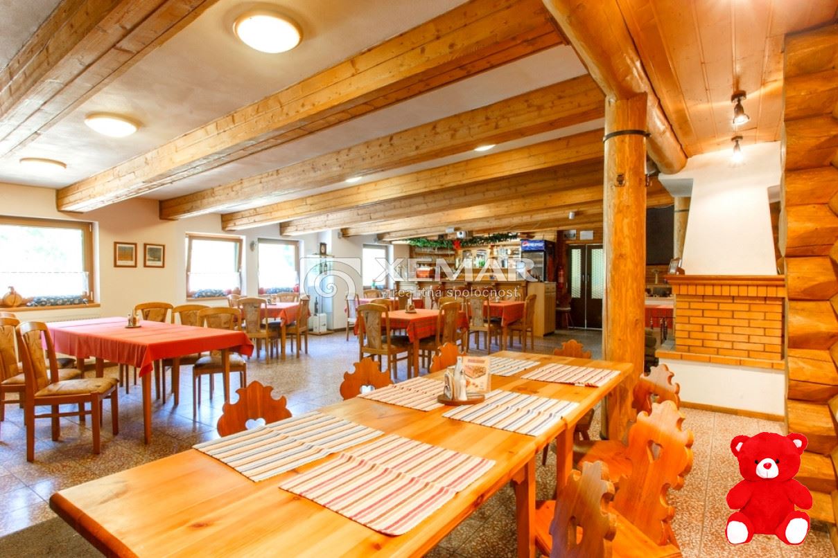 - na prízemí sa nachádzajú hlavné 2 časti reštaurácie s obojstranným krbom, barom, veľkou kuchyňou, zázemie, toalety, kúpeľňa