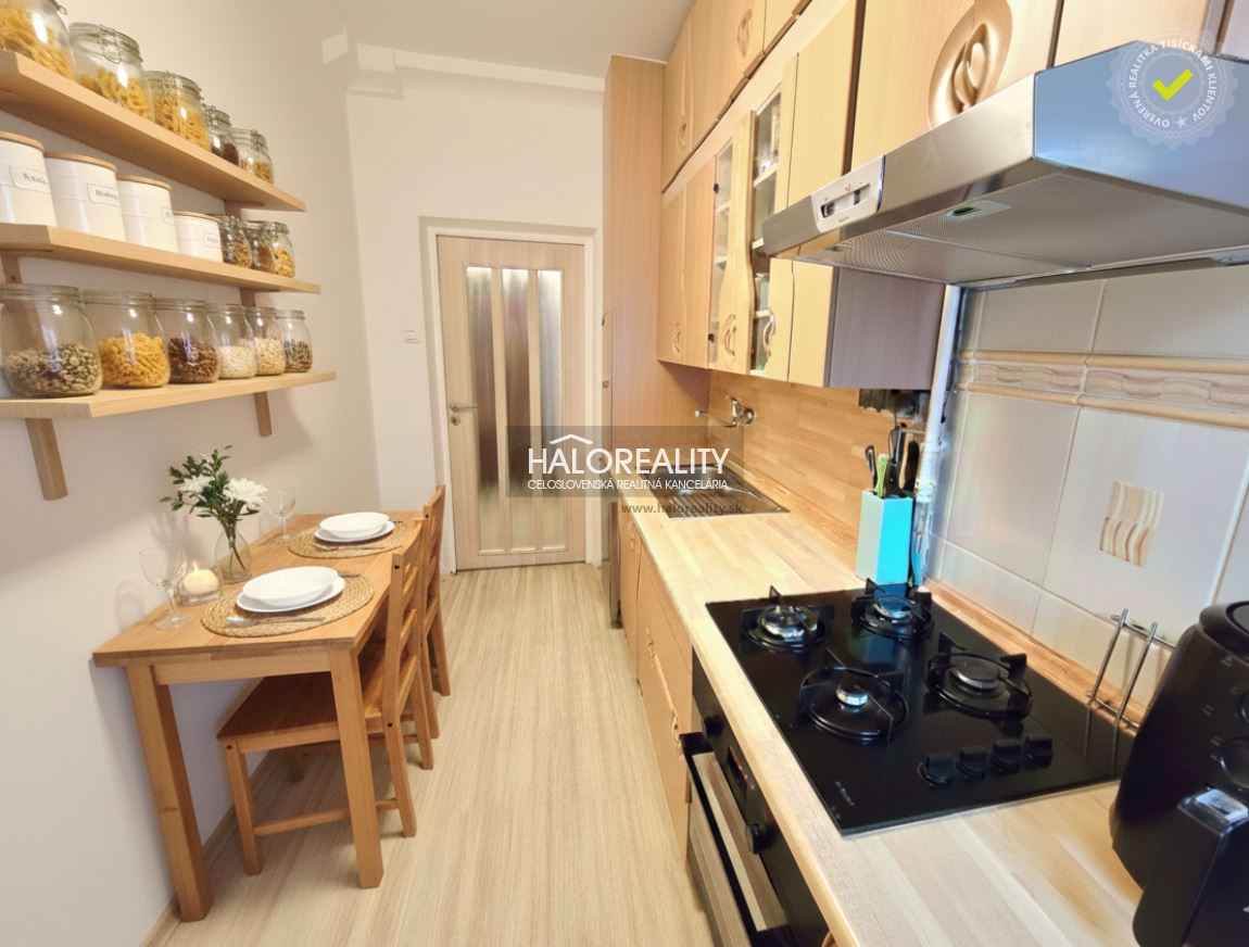 Tento rozmerovo veľkorysý zrekonštruovaný príjemnou atmosférou sálajúci byt sa predáva s nábytkom aj so spotrebičmi. DISPOZÍCIA: Vo vstupe je praktická šatníkova stena na mieru, ktorá dáva bytu dostatok úložného priestoru. Napravo je samostatná kuchyňa a dve miestnosti, jedna slúžiaca ako obývacia izba, druhá ako spálňa. Oproti vstupu je samostatné WC a kúpeľňa a praktický úložný priestor, kde sa nachádza aj práčka.