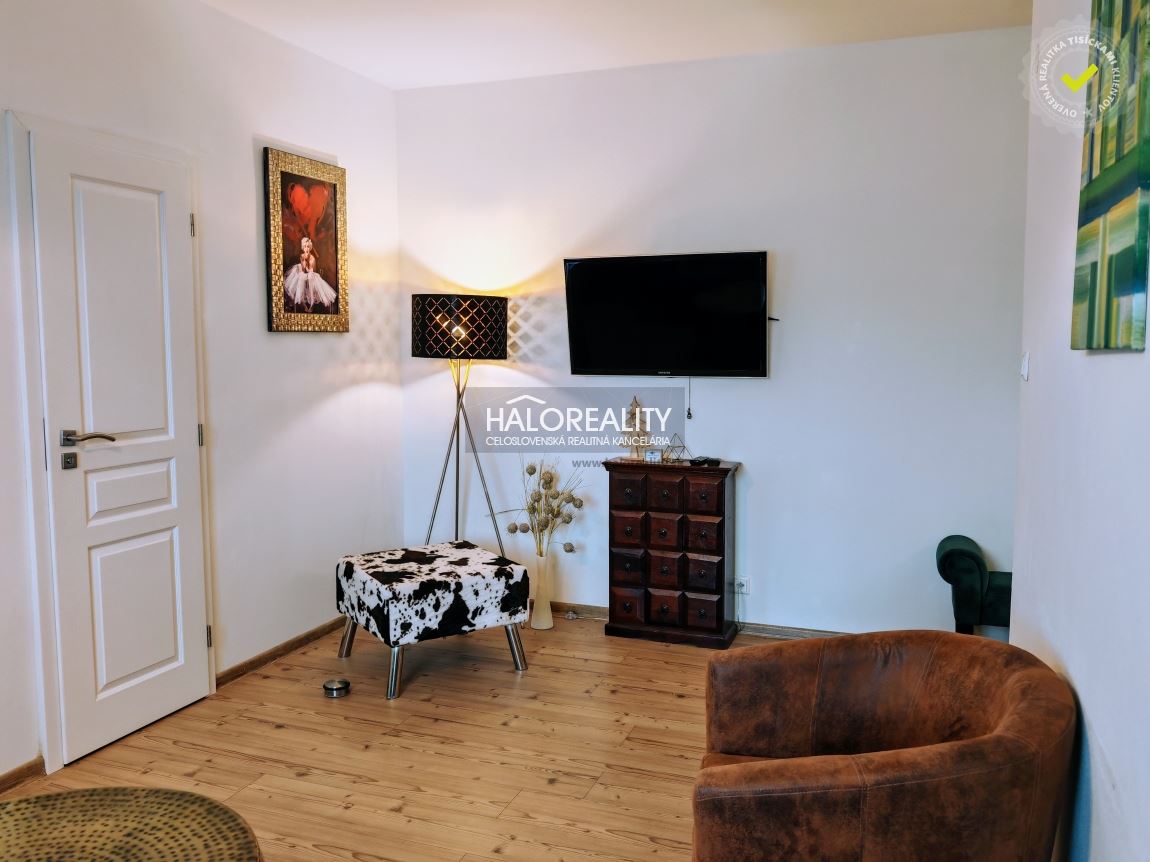 DISPOZÍCIA:byt pozostáva zo vstupnej chodby, z ktorej sa plynulo prechádza do priestrannej obývacej časti s rozťahovacou pohovkou. Obývacia časť je prepojená s modernou kuchyňou vybavenou elektro spotrebičmi a masívnym stolom. Spálňa disponuje manželskou posteľou. Priestranná kúpeľňa je vybavená veľkou vaňou a toaletou. Okná bytu sú orientované na východnú stranu. Podlahová plocha len bytu je 43 m². K bytu patrí pivnica (4,28 m²) a ešte jedna miestnosť (17,36 m²), ktorá sa nachádza pod bytom v pivničných priestoroch so samostatným vchodom. Táto miestnosť môže byť v budúcnosti využitá na rôzne účely napr. wellness. Sú v nej funkčné všetky prípojky (elektrika, voda, odpad, kúrenie).