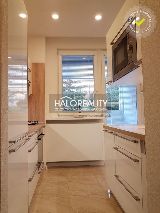 Byt prešiel kompletnou rekonštrukciou - rozvody kúrenia, plynu, elektriky, vody, odpadu, plastové okná, bezbariérová dlažba, interiérové dvere a vonkajšie bytové dvere aj so zárubňou, znížené stropy s bodovými svetlami, nové radiátory, kuchynská linka na mieru so vstavanými spotrebičmi Mora, vstavaná skriňa.