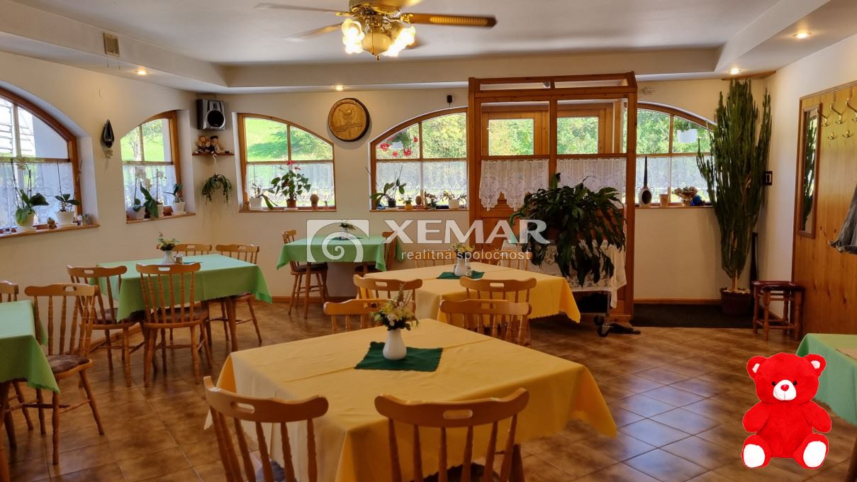 Exkluzívne na predaj malý rodinný penzión v rekreačnej obci Bystrá – „v Srdci Nízkych Tatier“. Penzión leží na rovinatom pozemku o rozlohe 900 m2 (+ 870 m2 SPF), pozostáva z troch objektov: 1. objekt je trojpodlažný tehlový, sčasti zateplený dom (125 m2 zastavanej plochy + 70 m2 prístavba reštaurácie), ktorý tvorí – prízemie: kuchyňa, reštauračná časť s barovým pultom a toaletami, 2-izbový byt, nová kúpeľňa (2024), sklad (izba). Poschodie na prenájom: spoločná kuchyňa a 3x izba, každá s kúpeľňou a WC; zimná drevená veranda; podkrovný sklad/sušiareň. Suterén: letná kuchyňa, lyžiareň/sklad a technické priestory s kúpeľňou a WC. 2. rekreačný dom na prenájom (90 m2 zastavanej plochy) pozostáva z prízemia a poschodia. Prízemie: spoločenská izba s kuchynským kútom + 2x izba, každá s kúpeľňou a WC. Poschodie: 3x izba, každá s kúpeľňou a WC. 3. objektom je garáž (30 m2 zastavanej plochy) s montážnou jamou a nadstavbou. Súčasťou domu sú parkovacie plochy pre 10 áut, terasa, malá pivnica a dreváreň. Ústredné kúrenie je riešené radiátormi a podlahovým kúrením. Teplo je získavané z novej pece na pevné palivo alebo z elektrického kotla, ktoré takisto zabezpečujú teplú vodu. Odpad formou septiku. Nehnuteľnosť sa predáva vrátane kompletného vybavenia zachyteného na fotografiách. Medzi najväčšie výhody tejto nehnuteľnosti patrí jej jedinečná poloha, len 5 min autom k SKI Tále, 10 min na parkovisko Horná Lehota Chopok; možnosť bývania a prenajímania súčasne a výborný technický stav zodpovedne udržiavanej nehnuteľnosti.