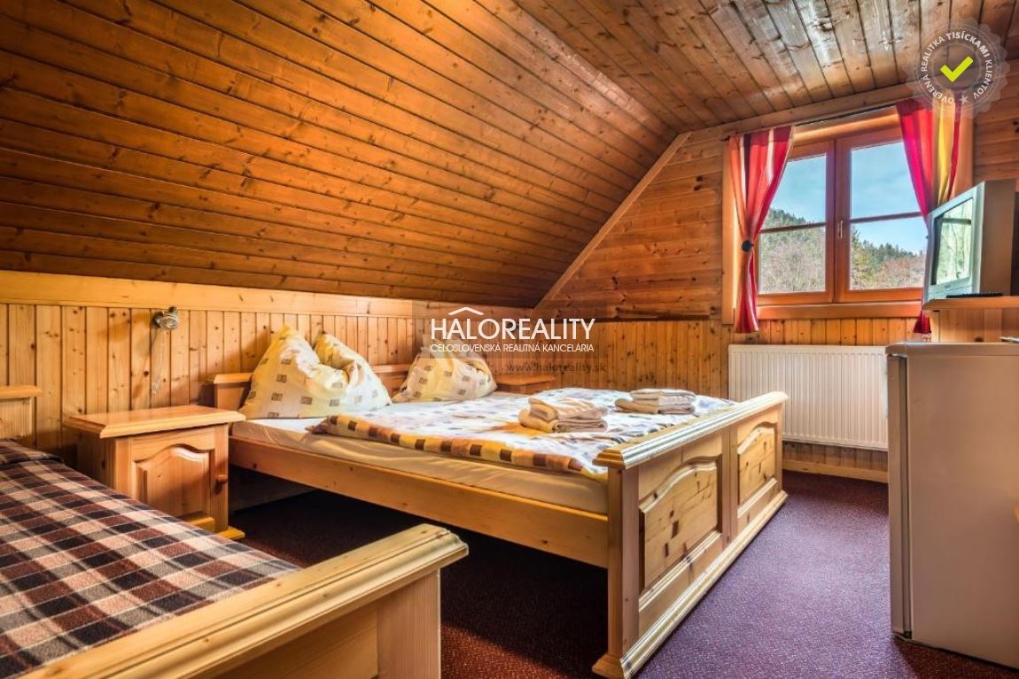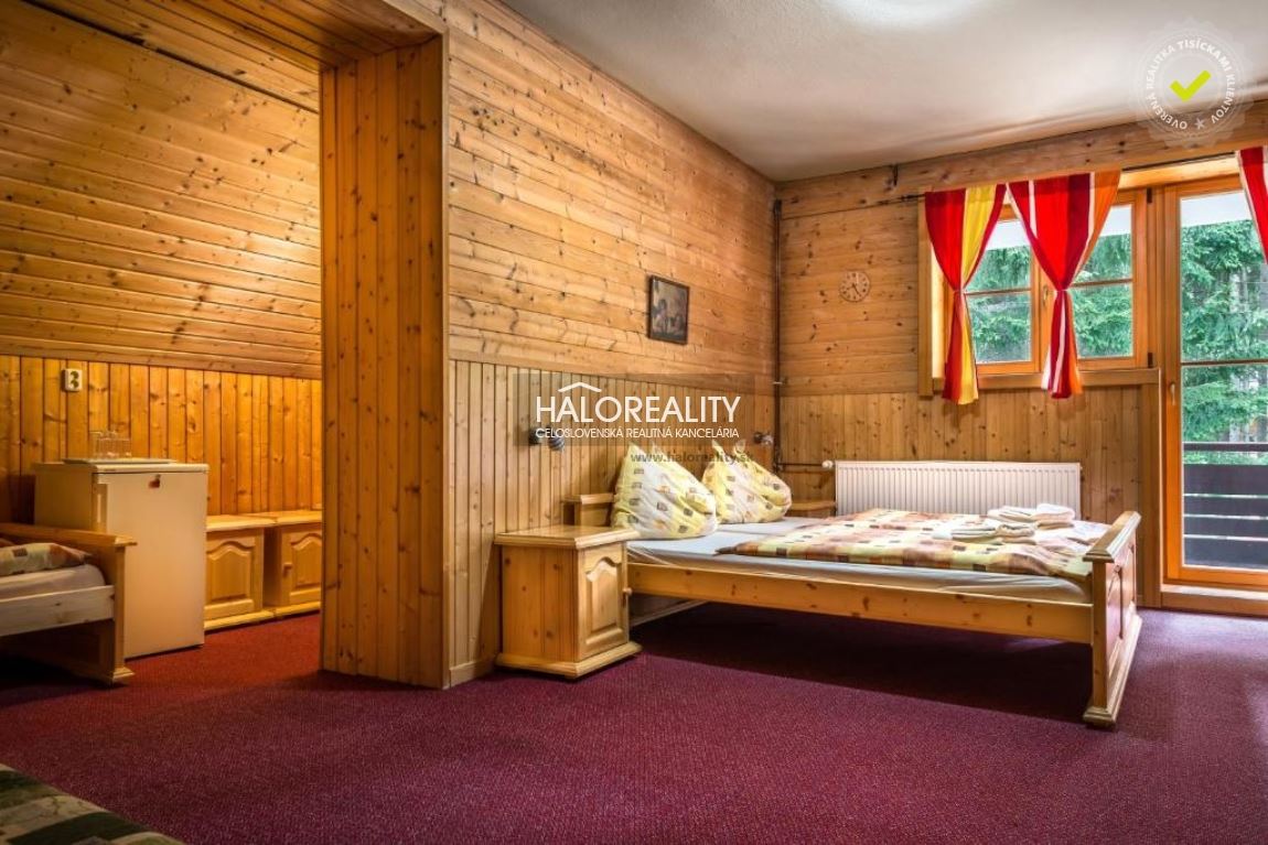 Penzión sa nachádza na parcele o výmere 500 m² (súčasť predaja), z ktorej 365 m² je zastavaná plocha samotného penziónu. Celková úžitková plocha na 3 podlažiach je 792 m². Majitelia penziónu majú v nájme od urbárskeho spoločenstva ďalší pozemok o výmere 1342 m² a to do 30.11.2066. Na tomto pozemku sa nachádza parkovisko o celkovej kapacite cca 10 miest, vonkajšie detské ihrisko a altánok s grilom.DISPOZÍCIA:Penzión má 3 podlažia. Na spodnom podlaží nájdeme vstup, recepciu, spoločnú jedáleň s barom a vonkajšou terasou, plne vybavenú kuchyňu, sociálne zázemie, lyžiareň, rodinnú izbu s dvoma spálňami a apartmán.