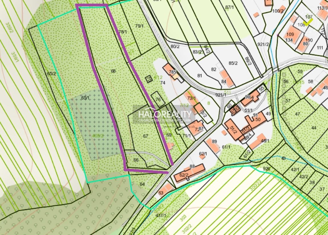 - fialovou línou pozemok - presné foto parciel z katastrálnej mapy