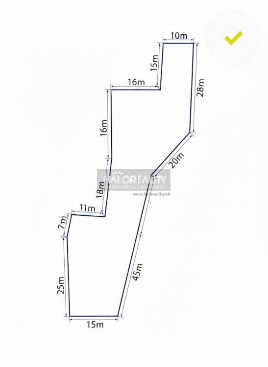 Orientačný nákres tvaru pozemku je na priloženom obrázku, vstupná časť pozemku má šírku 15m