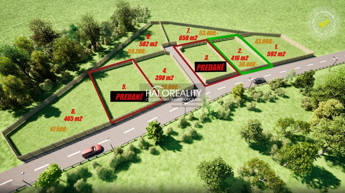 K pozemku vedie aktuálne 7 m široká nespevnená obecná komunikácia, ktorá bude po celej dĺžke ulice vyasfaltovaná a k bránkam pozemkov bude dobudovaný chodník zo zámkovej dlažby (stavebné povolenia aktuálne v procese). Cena pozemku je konečná, neovplyvní ju výstavba cesty, chodníkov, ani verejného osvetlenia.INŽINIERSKE SIETE:Budúcu stavbu na pozemku je možné pripojiť na elektrinu (prípojka na hranici pozemku), dokončená je výstavba elektrického vedenia, ktoré umožní napojenie pre celú lokalitu, vlastná prípojka obecného vodovodu je k dispozícii taktiež na hranici pozemku, plyn nie je možné pripojiť. Kanalizácia v obci nie je k dispozícii, v prípade výstavby sú možnosti odvodu odpadu buď žumpou alebo ČOV.VÝHODY:- lokalita pozemku dáva záujemcom možnosť využiť tento priestor pre účely trvalého bývania, nachádza sa v intraviláne obce