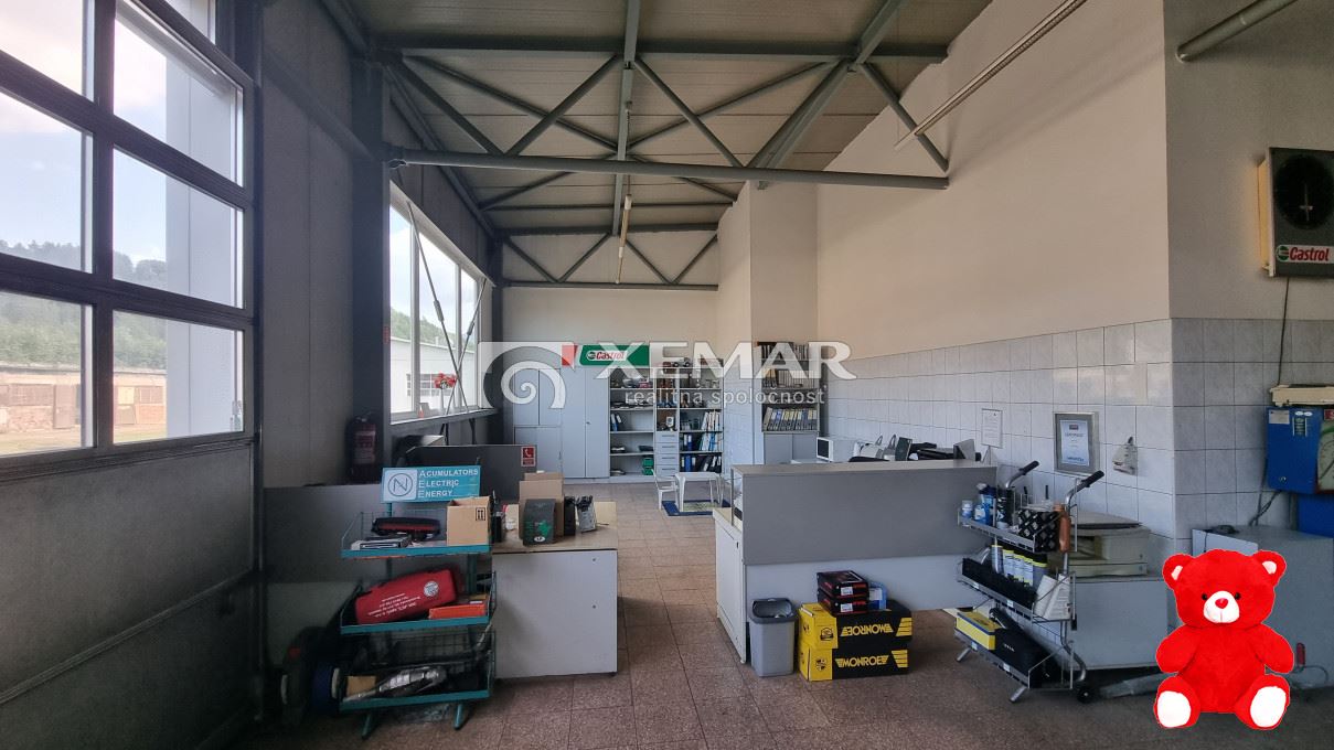 Hlavná stavba (zastavaná plocha 1600 m2) pozostáva: predajňa, sklady, kancelária, haly - autoservis, bytové priestory...Stavba haly (zastavaná plocha 506 m2)pozostáva: hala s prezliekarňou a sociálnym zariadením 417 m2, sklad 100 m2nepripojená na sietetehlová konštrukcia, pôvodný stav výška stropu 2.65/3.56 mStavba lakovňa (zastavaná plocha 229 m2)konštrukcia z iporuvýška stropu 3.95 mvstupná automatická brána 2.62 x 3.07 m (š x v)Stavba 8 garáží (zastavaná plocha 185 m2)3 garáže pre nákladné autá, 5 garáží pre osobné autápôvodný stavSiete – voda, plyn, kanalizácia
