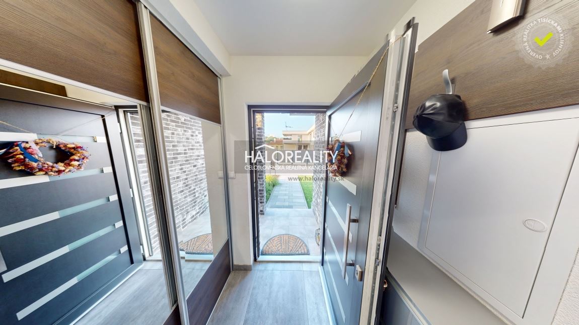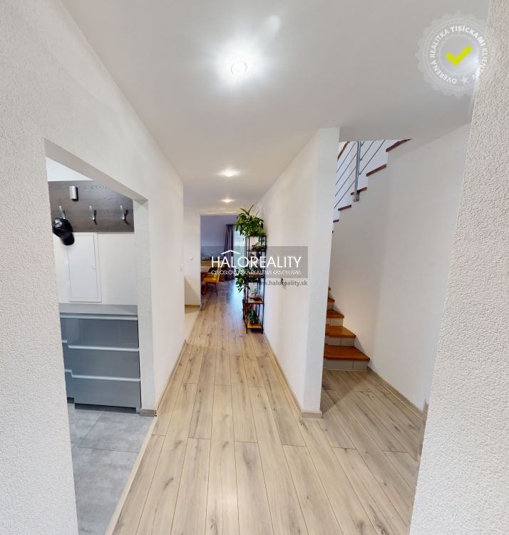 Po vstupe do domu sa ocitneme v priestrannej vstupnej časti, ktorá plynulo rozdeľuje dom na viacero zón. Vstupná chodba poskytuje pohodlný priestor na odkladanie obuvi či vrchného oblečenia a zároveň pôsobí vzdušne a reprezentatívne.
