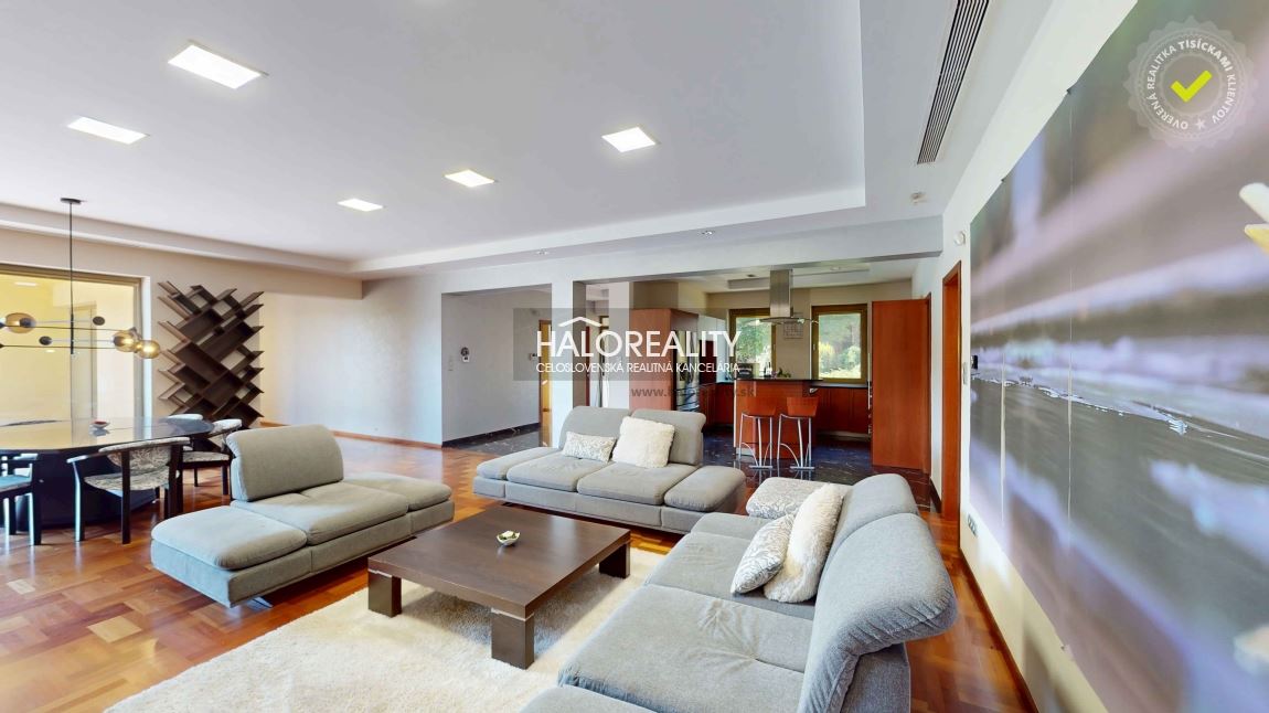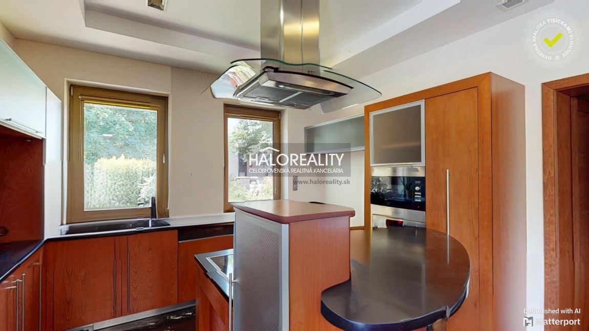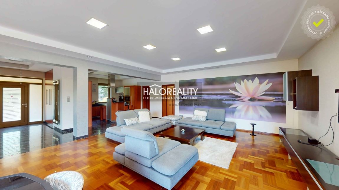Ponúkame na predaj nadštandardný rodinný dom s výnimočnými rozmermi, ktorý sa nachádza na jednej z najprestížnejších adries v Komárne – na Alžbetinom ostrove, v blízkosti zimného štadióna, dunajskej hrádze a len pár minút od centra mesta. DISPOZÍCIA:Po vstupe do domu sa ocitnete v priestrannej chodbe, ktorá je prepojená s veľkorysým otvoreným priestorom o rozlohe 76 m². Naľavo sa nachádza moderná kuchyňa, oproti nej obývacia izba a jedálenská časť s výstupom na terasu. Z tohto centrálneho priestoru vedie chodba do ľavej časti domu, kde sa nachádza vstup do garáže a do technických miestností, hneď pri vchode je práčovňa a vpravo sa chodbou dostaneme do dvoch spální, do kúpeľne s toaletou a domáceho fitness centra s jacuzzi. Cez obývaciu izbu je prístupná tretia spálňa, ktorá disponuje vlastným šatníkom a kúpeľňou s toaletou, čím poskytuje maximálne súkromie.STAV NEHNUTEĽNOSTI:Rodinný dom bol postavený v roku 2006 z pálených tehál Porotherm, s hrúbkou 40 cm, má valbovú strechu pokrytú škridlami Bramac a izolovaný strop. Dom je vybavený centrálnym podlahovým kúrením a klimatizáciou s prieduchmi na strope, v každej miestnosti s individuálnym nastavením teploty. Nočné bodové osvetlenie nad podlahou pre bezpečné pohybovanie sa v tme, centrálny vysávač, alarm napojený na SBS službu a kamerový systém, ktoré sa postarajú o váš pokoj a bezpečie. Garáž pre dve autá má automatickú bránu a poskytuje pohodlné parkovanie a vstup do obytného priestoru. Celý interiér bol zariadený s dôrazom na detail, drevené podlahy a nábytok sú vyrobené na mieru.