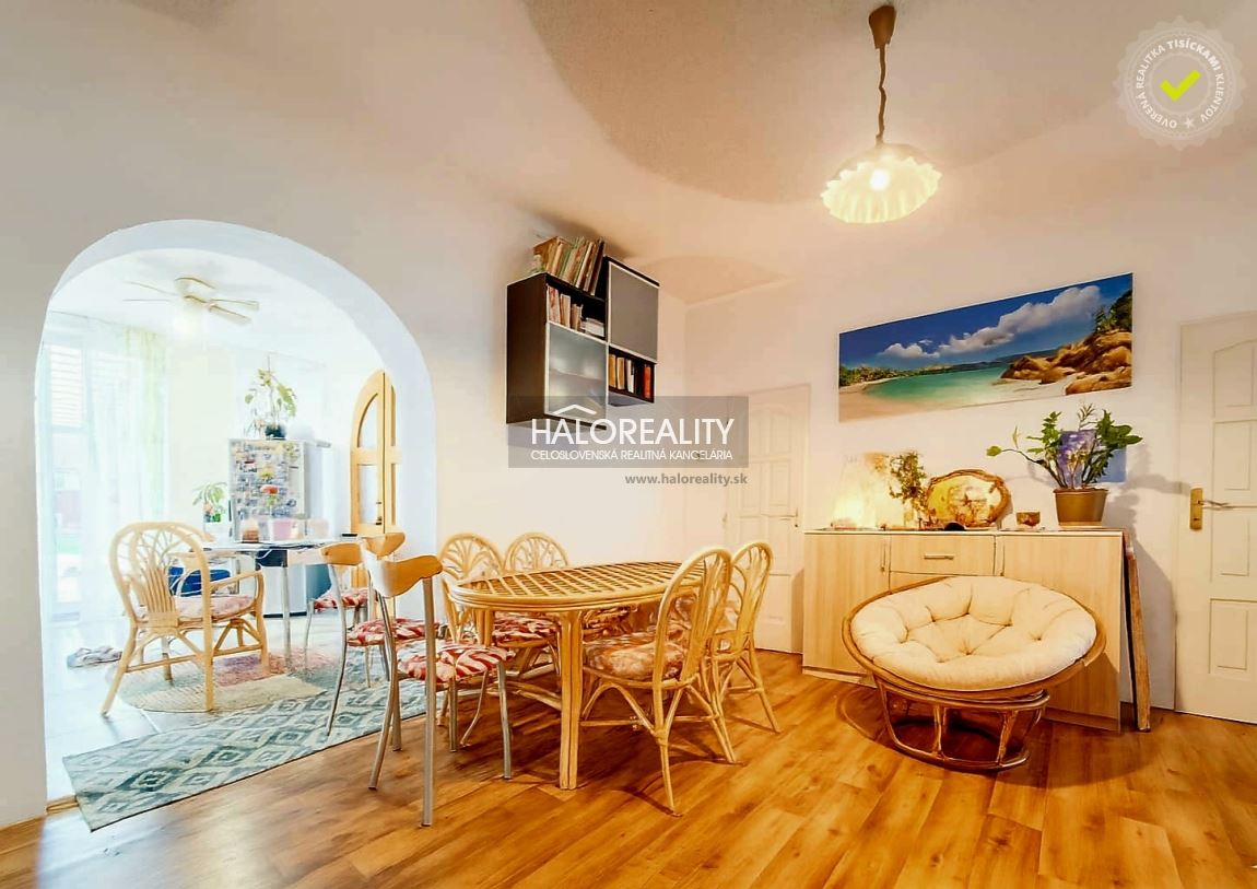 Ponúkame Vám na predaj priestranný 4-izbový rodinný dom vo vyhľadávanej a pokojnej lokalite Komárna, v časti Bene. Rodinný dom so zastavanou plochou 150m² sa rozprestiera na pozemku s rozlohou 462m².DISPOZÍCIA:Dom pozostáva zo vstupnej chodby, priestrannej obývacej izby čiastočne prepojenou s jedálňou a kuchyňou, spálne ku ktorej prislúcha aj veľký šatník, 2 veľké izby, kúpeľňa s vaňou, samostatná toaleta a miestnosť z ktorej je výstup na povalu. Z jedálne je výstup na priestrannú prekrytú terasu na ktorej sa nachádza murovaná pec. Dom disponuje povalou, ktorú si budúci majitelia môžu plne zobytniť. Na pozemku sa nachádza aj menšia pivnica, ktorá slúži na uskladnenie zeleniny a ovocia. Parkovanie je možné pred domom aj priamo vo dvore.STAV NEHNUTEĽNOSTI:RD bol postavený v roku 1968 z tehly. Strešná krytina je škridla. V rodinnom dome prebehla čiastočná rekonštrukcia, ktorá zahŕňala: vybetónovanie podláh, menené rozvody, vykurovanie, nová elektroinštalácia, vonkajšie zateplenie, omietky, plastové okná a dvere, sanita v kúpeľni a wc.INŽINIERSKE SIETE:Dom je napojený na všetky IS, elektrina, voda, plyn. Odpad je riešený do kanalizácie. Dom je napojený na mestskú vodu. Vykurovanie zabezpečuje úsporný plynový kondenzačný kotol cez radiátory. Na pozemku sa nachádza aj studňa na zavlažovanie.LOKALITA:Časť Bene patrí medzi vyhľadávané a pokojné lokality mesta Komárno. Ide o tichú rezidenčnú zónu s rodinnými domami, ktorá ponúka príjemné bývanie mimo hlavného ruchu, no zároveň s výbornou dostupnosťou do centra mesta. V blízkosti sa nachádza kompletná občianska vybavenosť – obchody, materská aj základná škola, športoviská a zastávky MHD.