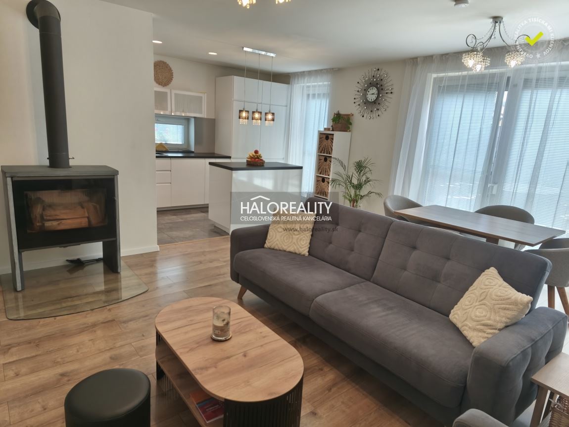 Dom sa predáva zariadený podľa dohody s majiteľom.POZEMOK:Pozemok má celkovú výmeru 423 m², je oplotený a sú na ňom dokončené terénne úpravy - chodníky, plocha na parkovanie vo dvore (dve parkovacie miesta) aj pred bránou, trávnik, závlahy, okrasná výsadba, vyvýšené záhony, elektrická brána.VÝHODY:- novostavba