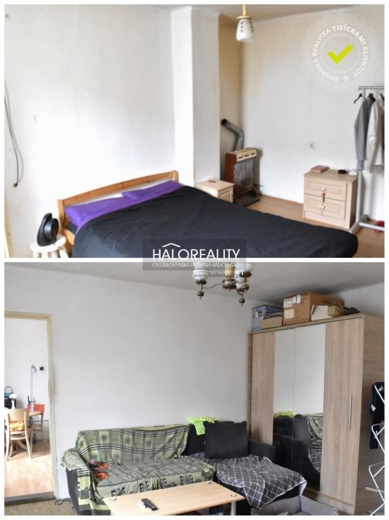 - spálňa STAV NEHNUTEĽNOSTI:Nehnuteľnosť je v dobrom technickom stave, trvale obývaná. Rodinný dom bol postavený v roku 1956, na klasických betónových základoch z pálenej tehly, stropy sú drevené trámové. Strecha je v prednej časti sedlová, nová krytina - šindeľ, v zadnej je pultová, krytina - pozinkovaný plech.
