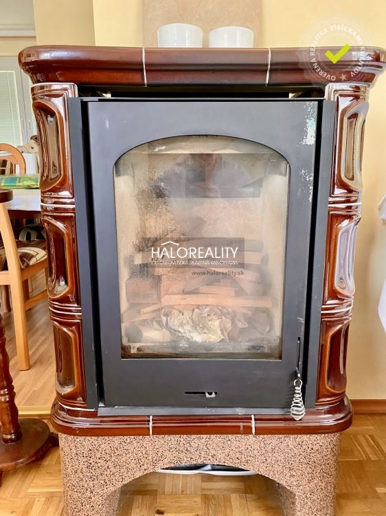 - obývačka spojená s jedálňou a kuchyňou s plne funkčnými krbovými kachlami a zariadením