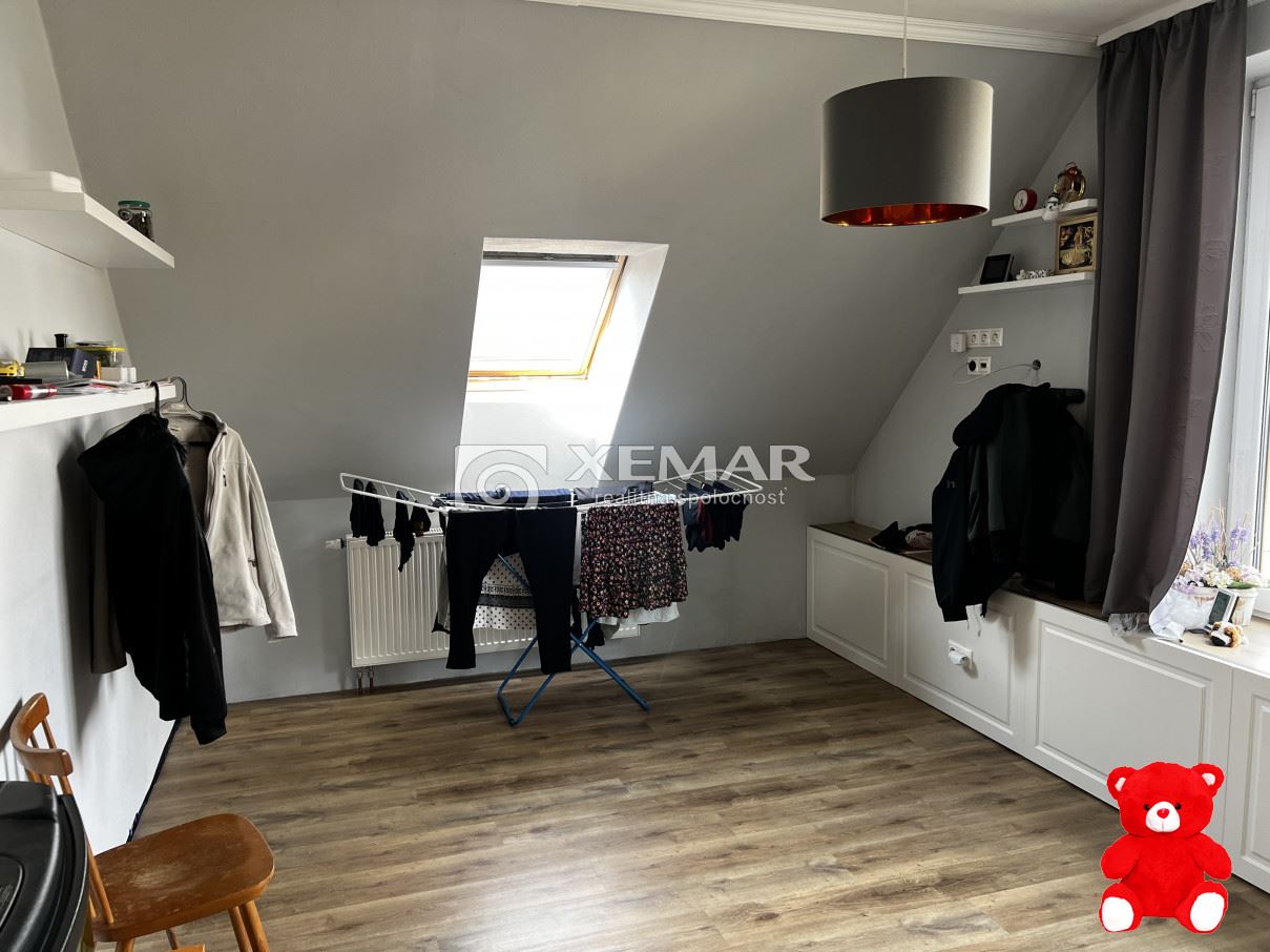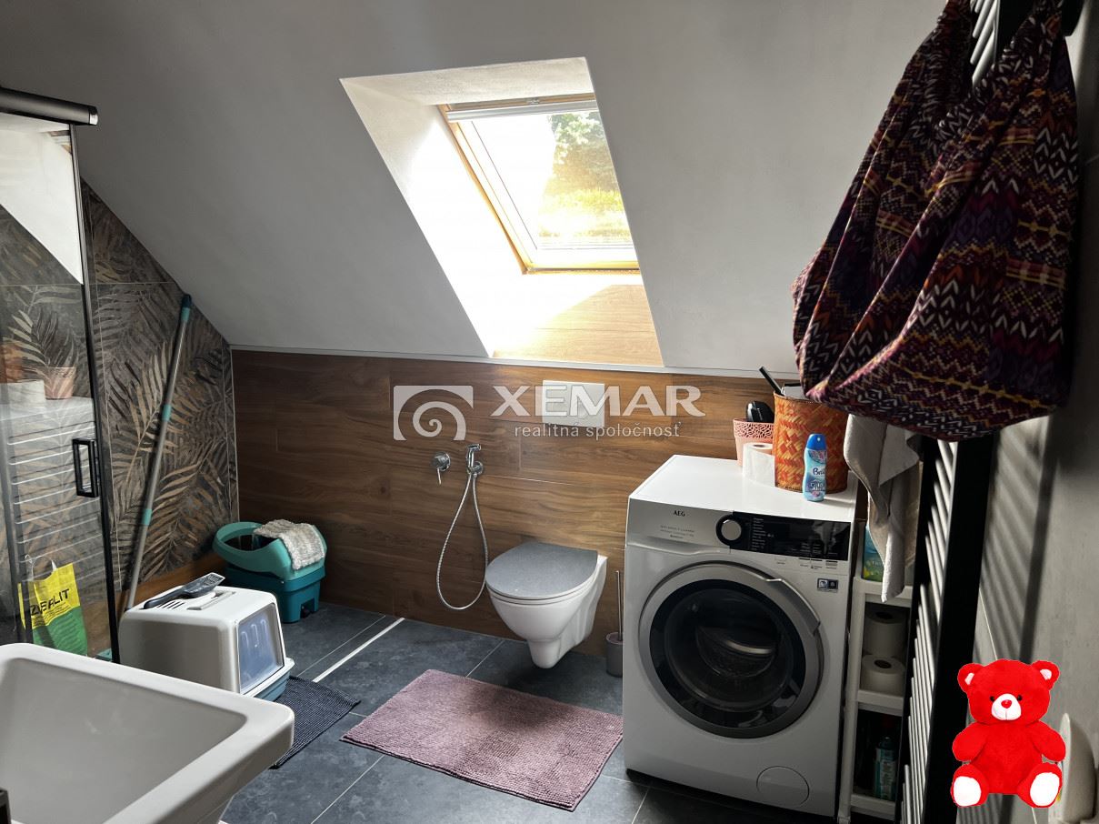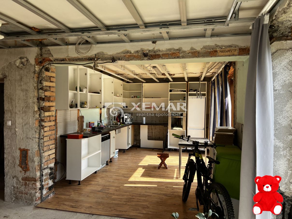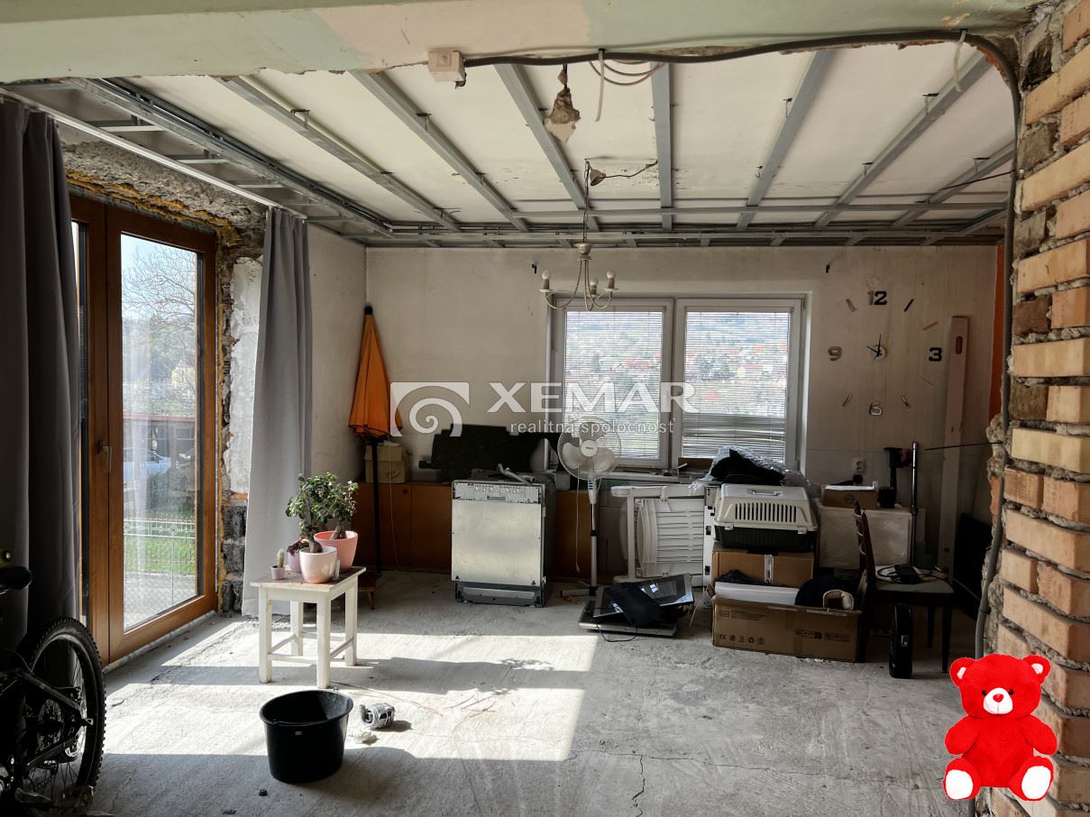 V dome prebieha rekonštrukcia celého prízemia, kroré dispozične tvorí vstupná chodba, technická miestnosť, veľká izba budúca spálňa, menšia kúpeľňa + wc, a veľká obývačka spojená s kuchyňou, odkiaľ je výstup do záhrady (budúcej terasy).Z chodby sa dostaneme do podkrovia, ktoré prešlo úplnou rekonštrukciou pred 8 rokmi, vymenená celá elektrika, okná , podlahay, Podkrovie dispozične tvorí chodba, kuchyňa - podlahové kúrenie, spálňa, detská izba so šatníkom a kúpelňa+WC.