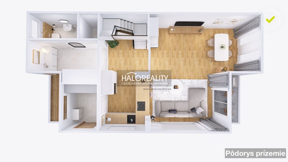 Napriek tomu, že stavba je kolaudovaná ako bytová jednotka, celková dispozícia a technické riešenie umožňuje bývanie ako v rodinnom dome.