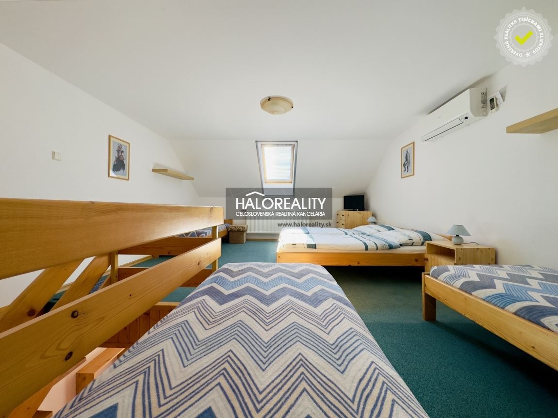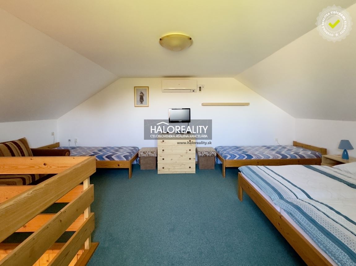 Ponúkame vám na predaj dvojpodlažnú rekreačnú chatu (penzión) v rekreačnej obci Podhájska, ktorá je vzdialená od termálneho kúpaliska 800 m a nachádza sa na pozemku s rozlohou 931 m².DISPOZÍCIA:Celý objekt pozostáva so štyroch samostatných klimatizovaných apartmánov, z ktorých každý má samostatný vstup, terasu, kuchynku s vybavením, jedáleň, kúpeľňu so sprchovým kútom a toaletou. V podkroví má každý apartmán k dispozícii veľkú rodinnú izbu s piatimi lôžkami. Kapacita penziónu je 20 lôžok. TECHNICKÝ STAV:Strecha je sedlová so strešnou krytinou- asfaltový šindeľ, stavba je postavená z kvádrovej tvárnice a bola daná do užívania v roku 2004. Penzión je vo výbornom stave a je pripravený na ďalšiu prevádzku bez ďalších nutných investícií.