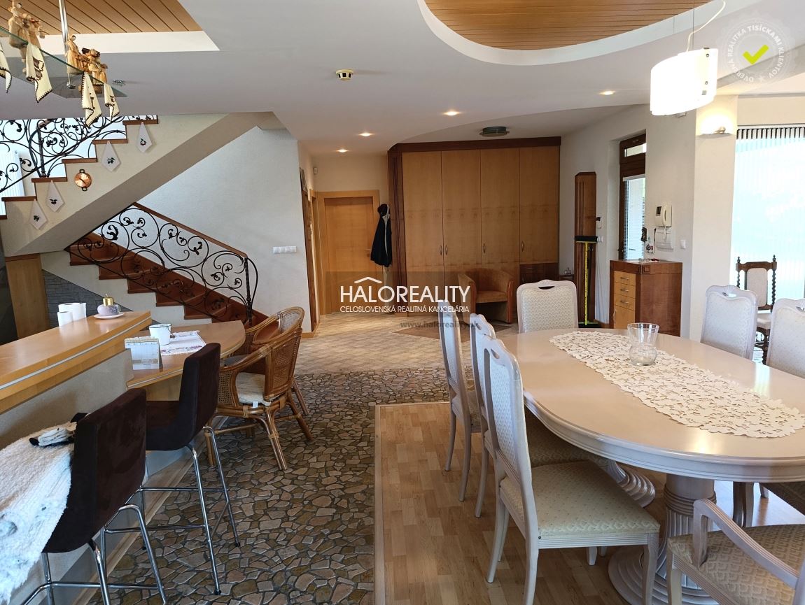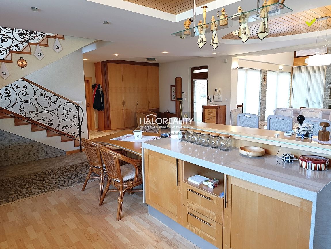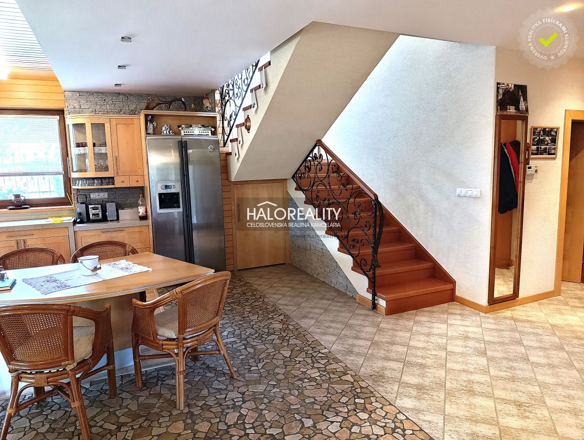 Celý pozemok je oplotený plotom a z bočnej strany veľkým múrom v ktorom je pivnica na uskladnenie záhradných vecí. Záhrada je zatrávnená a vysadená ozdobnými drevinami. Polievanie zabezpečuje zavlažovací systém. STAV NEHNUTEĽNOSTI:Vila je vo výbornom stave, je vykurovaná, vetraná, je o ňu postarané, záhrada je udržiavaná. Vykurovanie je zabezpečené plynovým kotlom (plynový zásobník), krbom na drevo v obývacej časti. Odpady sú zvedené do žumpy (10 m3). V dome sú použité kvalitné stavebné materiály, kvalitné prevedenie. Kuchyňa s raňajkovým pultom (ostrovom) je vyrobená na mieru z čerešňového dreva, zabudované elektrospotrebiče. Každá spálňa disponuje šatníkom, kované zábradlie do podkrovia, podlahové roštové kúrenie v oblasti veľkých okien. Kamerový a bezpečnostný systém sú samozrejmosťou. Vila sa predáva s kompletným zariadením. LOKALITA:Tichá lokalita pod lesom na Hornej Nitre v obci Podhradie, krásny výhľad na celú kotlinu, na bojnicky zámok a torzo hradu v obci. V blízkosti kúpeľné mesto Bojnice, možnosti hubárčenia, turistiky, prechádzky po okolí, letné, zimné športy, ľahká a rýchla dostupnosť.NÁZOR MAKLÉRA:Dom/ vila je vhodný na celoročné bývanie alebo ako víkendový, prázdninový dom. Dom si nevyžaduje žiadnu investíciu, je pekný, svetlý, štýlový, pripravený na okamžité bývanie a využívanie. Dom je vhodný pre každého kto chce investovať do kvality a pekného prostredia.