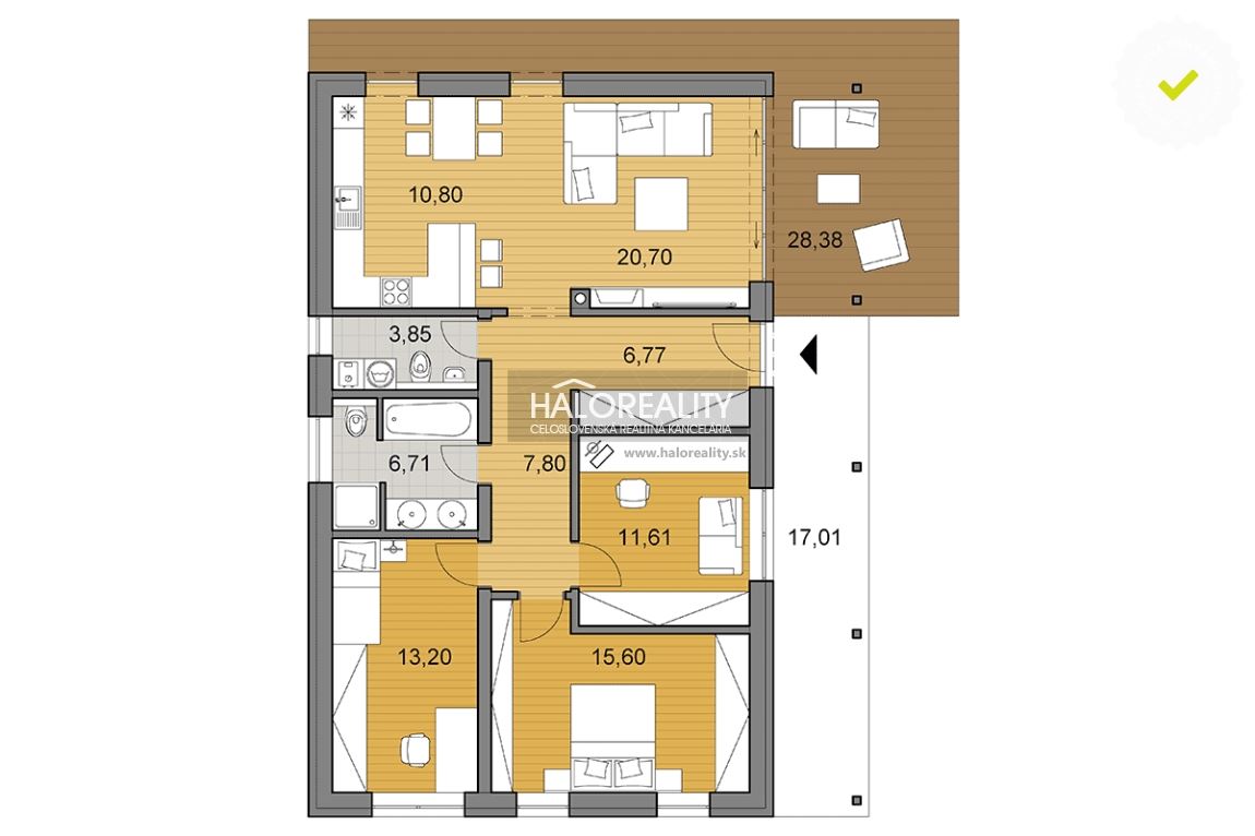 • Výstup na čiastočne prekrytú terasu