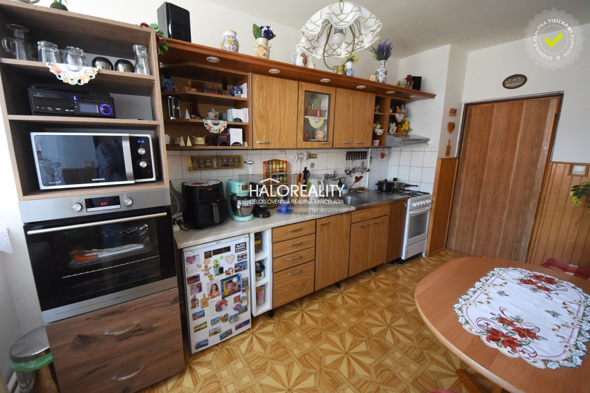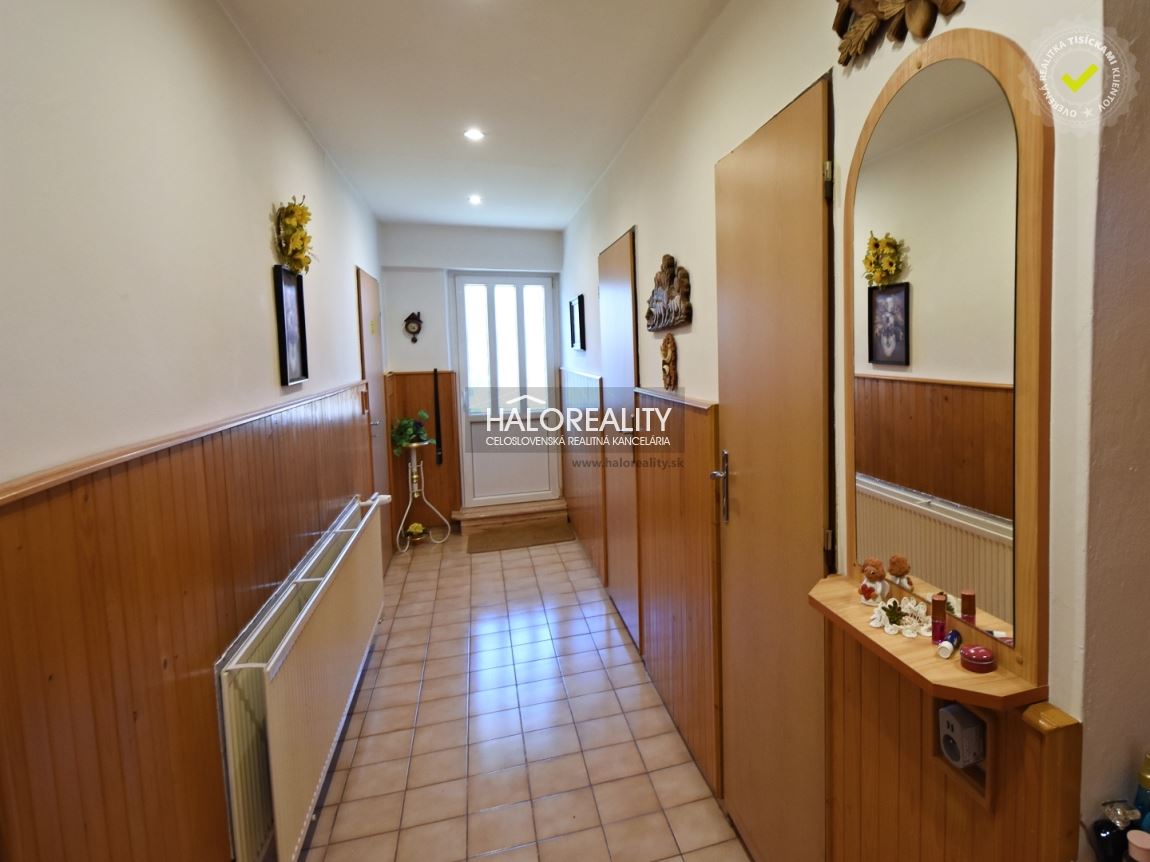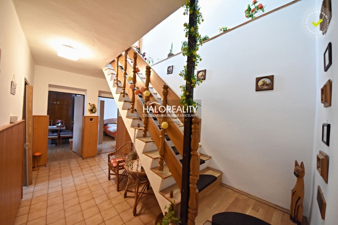Na poschodí sa nachádza veľká hala, 2 ďalšie obytné izby, WC a chodba z ktorej vedú dvere na strechu garáže- možnosť úpravy na veľkú terasu. STAV NEHNUTEĽNOSTI:Dom prešiel postupnou rekonštrukciou, dvere a okná sú plastové, v obytných miestnostiach sú plávajúce podlahy, v ostatných priestoroch keramická dlažba, v kuchyni linoleum. Kúrenie je ústredné s plynovým kondenzačným kotlom, alternatívne aj kotlom na pevné palivo. Dom je ihneď obytný, zariadený.VÝHODY: • 6 obytných izieb