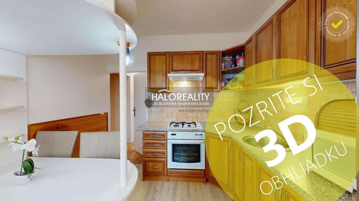 Byt sa nachádza v tichej a vyhľadávanej časti Žiaru nad Hronom, s kompletnou občianskou vybavenosťou v pešej dostupnosti. V okolí sa nachádzajú školy, škôlky, detské ihriská, obchody, pošta, zdravotné stredisko aj zastávky MHD. Lokalita je vhodná najmä pre rodiny s deťmi, ale aj pre tých, ktorí hľadajú pokojné bývanie s dobrou dostupnosťou do centra mesta aj na pešo.DISPOZÍCIA:Dispozične pozostáva zo vstupnej priestrannej chodby z ktorej sú samostatné vchody do jednotlivých izieb, do poslednej izby s loggiou sa prechádza cez malú chodbu na ktorej je samostatné WC a kúpeľňa. Kúpeľňa aj samostatná toaleta prešli novou rekonštrukciou. K bytu prislúcha aj samostatná pivnica o výmera 1,6m² a komora o výmere 2m². Pred vstupnými dverami je spoločná chodba so susedmi, ktorá je chránená dverami s guľou. Parkovanie je možné pri panelákoch, resp. pre lepšie pohodlie je možnosť zakúpenia parkovacieho miesta od mesta.STAV NEHNUTEĽNOSTI:Byt prešiel pred časom rekonštrukciou. Úplne nová rekonštrukcia zahŕňa kompletnú a vkusnú rekonštrukciu kúpeľne a toalety. V celom byte sú vymenené plastové okná. Kuchyňa, podlahy a stierky boli rekonštruované dávnejšie. Loggia je v perfektnom stave aj s vymeneným zábradlím aj presklenou výplňou. Elektrické rozvody sú len čiastočne zrekonštruované.VÝHODY:- bez tiarch a kúpou voľný;