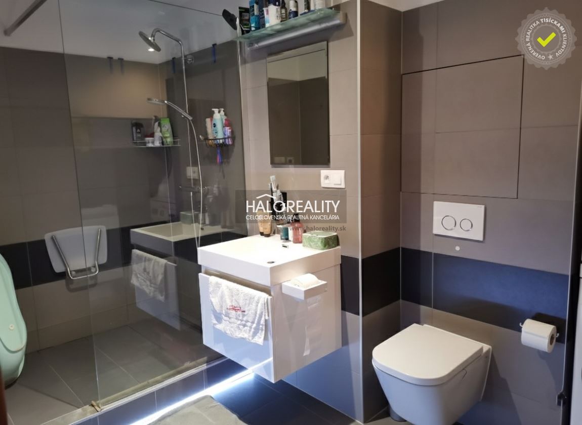 Kúpeľňa pôsobí moderným dojmom s pekným obkladom a dlažbou a podlahovým elektrickým kúrením, v celom byte okrem kúpene a WC sú plávajúce podlahy, v lete padne vhod klimatizácia, keďže byt nemá už zhora žiadnych susedovBYTOVÝ DOM:Je udržiavaný, pred asi 5 rokmi bola urobená nová izolácia strechy, zatiaľ nie je zateplený, má namontované video zvončeky, má nižšie náklady, keďže nemá výťah a má vlastné plynové kúrenie a vlastný ohrev teplej vodyVÝHODY:moderne zrekonštruovaný byt s pekným výhľadom, výborná dispozícia bytu - tri samostatné nepriechodné izby, v byte zostáva nábytok - 2 skrinky so sedačkou v obývacej izbe, na chodbe skrinka s vešiakovou stenou, v detskej izbe vstavaná skriňa a v spálni skriňa nad posteľamiMESAČNÉ NÁKLADY:Náklady na byt pre 6 člennú rodinu sú cca 170Eur + elektrina 50Eur + voda 30EurNÁZOR MAKLÉRA:Pekný 3 izbový byt po rekonštrukcii bez ďalších investícií
