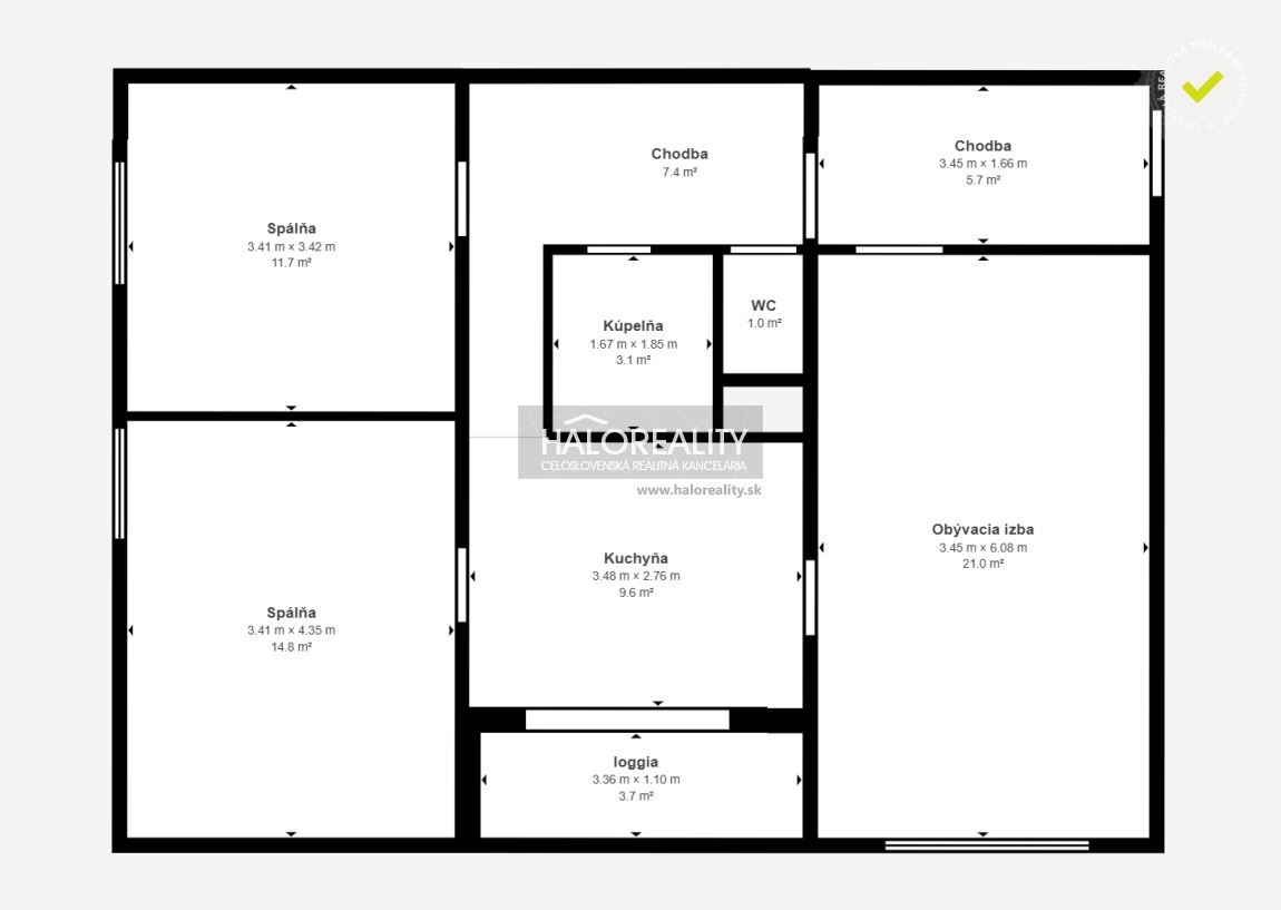 DISPOZÍCIA:3 izby – priestranná obývacia izba, dve samostatné izby, kuchyňa s jedálenským kútom, chodba a sociálne zariadenie. Kuchyňa s loggiou a obývacia izba sú orientované na východ, dve izby na juh, čo zabezpečuje dostatok prirodzeného svetla počas celého dňa.STAV BYTU:Byt je udržiavaný s možnosťou okamžitého nasťahovania alebo rekonštrukcie podľa vlastných predstáv. Bytové jadro je murované a prešlo rekonštrukciou v minulosti.