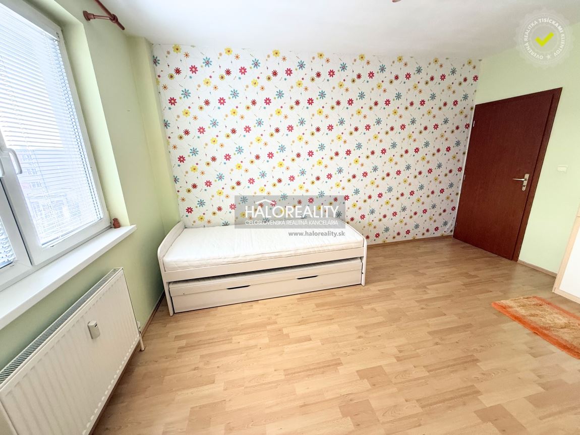 Spálňa poskytuje nielen komfortný priestor na relax, ale aj dostatok úložného priestoru vďaka veľkej vstavanej skrini. Izba, aktuálne zariadená ako detská, je veľmi veľká, svetlá a vzdušná.