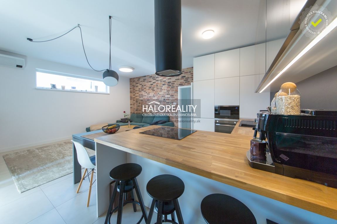 DOHODA NA CENE MOŽNÁ!DISPOZÍCIA BYTU: Priestranná obývačka spojená s kuchyňou a východom na terasu, 2 samostatné nepriechodné izby, samostatná kúpeľňa, WC s odkladacím priestorom, technická miestnosť, chodba a vstupná hala.STAV NEHNUTEĽNOSTI: Dom bol skolaudovaný v roku 2017. Postavený je z tehlových tvárnic, zateplený polystyrénom s hrúbkou 18 cm. Okná sú plastové s izolačným trojsklom so sieťkami proti hmyzu. Podlahy sú pokryté laminátovými parketami v izbách a veľkoformátovou dlažbou v ostatných miestnostiach. Vnútorné dvere sú laminátové v obložkových zárubniach. Kúrenie je elektrické podlahové s možnosťou regulácie teploty v každej miestnosti. Urobená je predpríprava na video-vrátnika aj elektricky ovládanú bránu. Interiér bytu je navrhnutý tak, aby bol dokonale využitý celý priestor a vytvoril atmosféru domova. Nábytok v byte je robený na mieru a zabezpečí dostatok úložného priestoru. Kuchyňa je prispôsobená potrebám každého kuchára – má dostatok úložného priestoru, veľkorysú pracovnú dosku, samozrejmosťou sú aj kvalitné zabudované spotrebiče – indukčná varná doska s digestorom, elektrická rúra, mikrovlnná rúra, zabudovaná chladnička s mrazničkou, umývačka riadu a v prípade návštevy každý ocení aj na mieru robený rozťahovací jedálensky stôl. V obývačke je dômyselne osadený drevený panel s TV, ktorý je možné v prípade potreby posúvať. V izbách a na chodbe sú osadené šatníkové skrine, takže všetko má svoje miesto. V obývačke je nainštalovaná kvalitná klimatizácia. Nesporným benefitom bytu je priestranná zastrešená terasa ktorá poskytuje priestor na relax a odpočinok, ale zároveň je možné ju využiť na grilovanie či párty s priateľmi.
