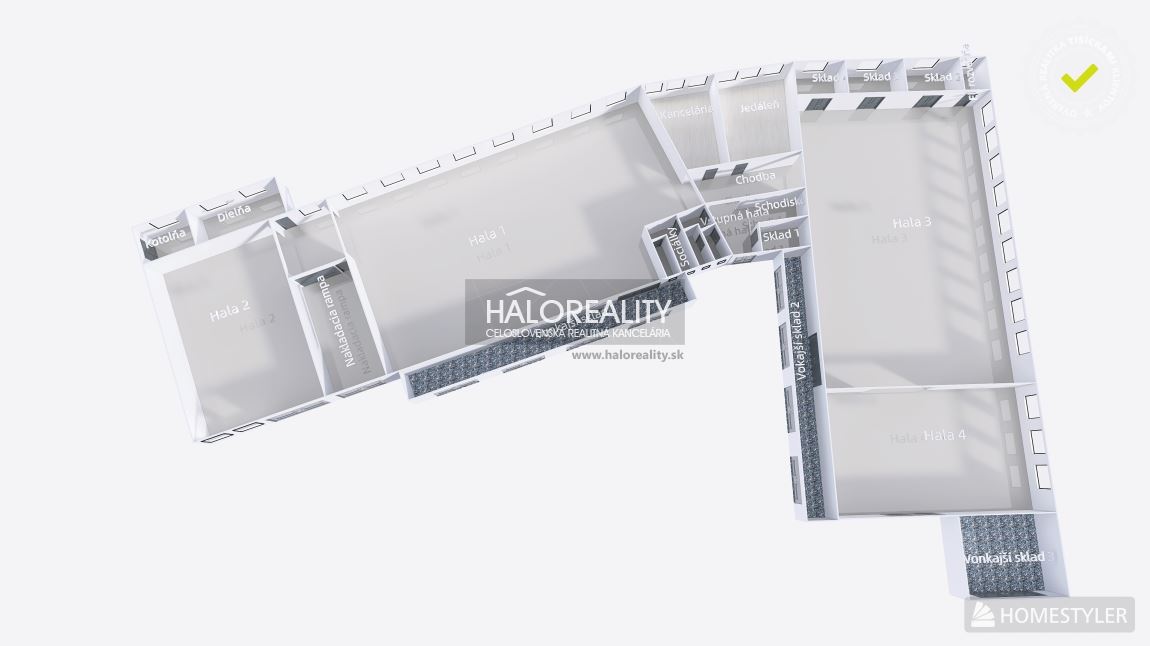 • Hala 4 o výmere cca 150 m² s výškou stropu 3 m