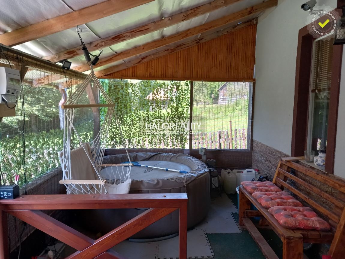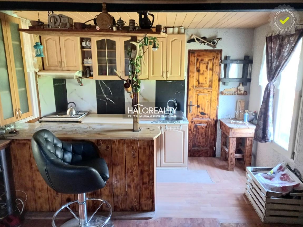 Ponúkame na predaj chatku s veľkou záhradou v tichej lokalite Myjavských kopaníc, neďaleko mesta Brezová pod Bradlom. DISPOZÍCIA:Dispozične pozostáva zo vstupu do chatky cez veľkú uzavretú terasu do kuchyne spojenej s obývacou izbou /17m²/. Z nej sa vpravo vchádza do kúpeľne so sprchovým kútom spojenej s WC a vľavo sa vojde do menšej spálne. STAV NEHNUTEĽNOSTI:Drevená chatka je zateplená /r.2023/, má osadené plastové okná, TV signál od DIGI. Veľká uzavretá terasa, kde sa nachádza aj vírivka. Bezpečnosť zabezpečuje alarm aj kamerový systém.