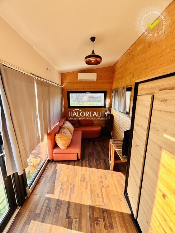 Ponúkame na predaj mobilný dom vyrobený v roku 2023, v rozmeroch 7x2,5m na pozinkovanom podvozku. Zospodu ma mobilný dom pozinkovaný plech a steny sú zateplené minerálnou tvrdenou vlnou. Kompletne zariadené. Kúrenie a chladenie zabezpečuje aj na diaľku ovládaná klíma Daikin (extra ticha a účinná). Mobilný dom sa predáva bez pozemku. STAV NEHNUTEĽNOSTI:Mobilný dom vyrobený v roku 2023 s pekným exteriérovým aj interiérovým dizajnom. VÝHODY:Vlastné bývanie je snom mnohých ľudí, ale len málokomu sa tento sen podarí splniť. Výstavba rodinného domu je finančne aj časovo náročná a počet bytov v dobrých lokalitách je obmedzený. To je jeden z dôvodov, prečo sa mobilné domy stali takými populárnymi. Ich výstavba je veľmi rýchla a svojim obyvateľom poskytujú komfort rodinného domu za zlomok ceny.