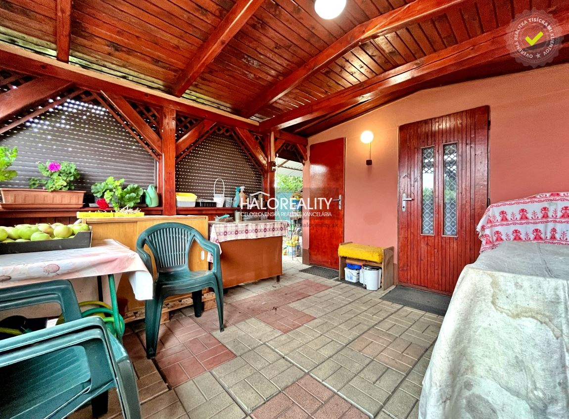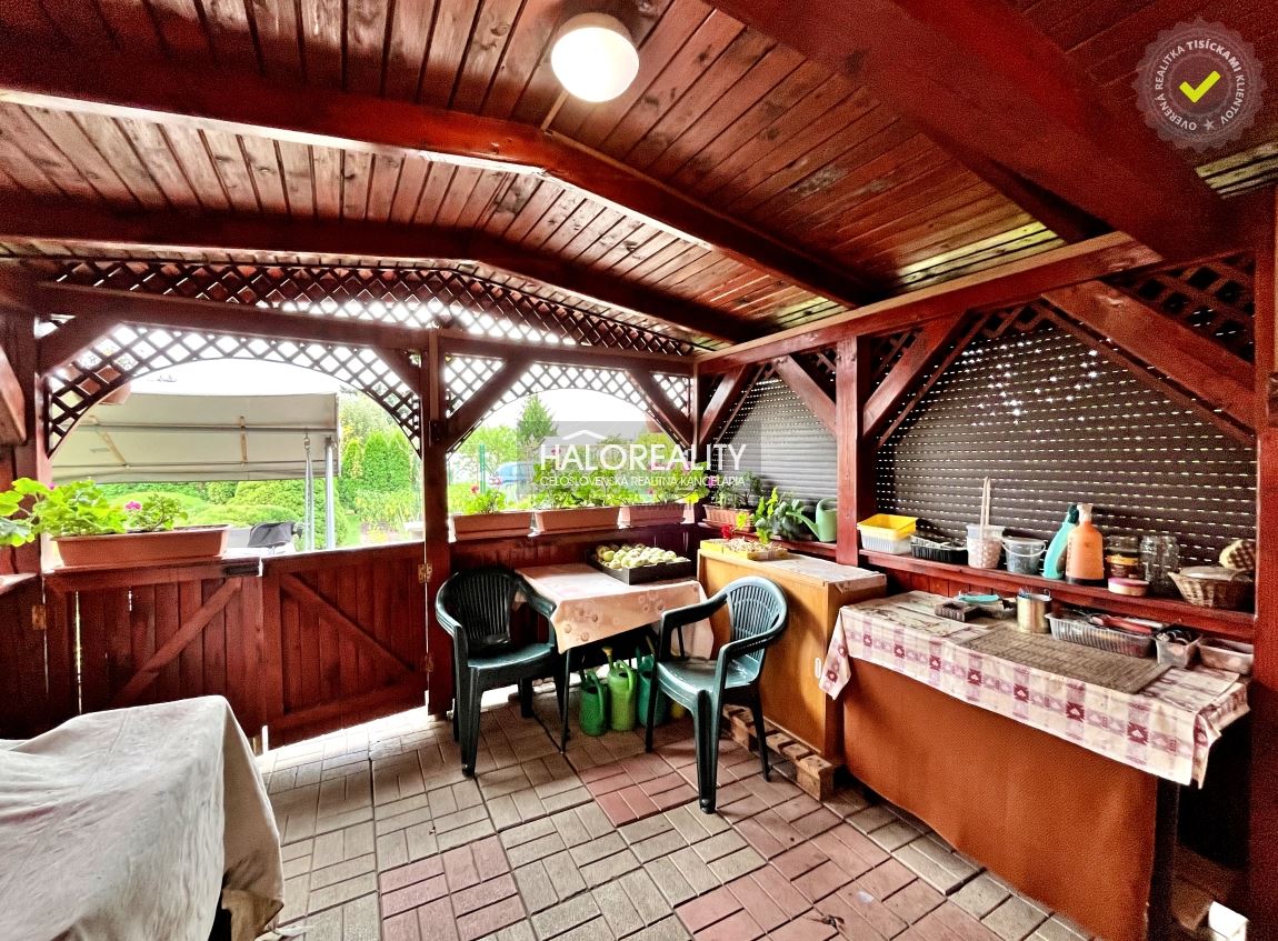 Altánok, ktorý leží v tesnej blízkosti chaty, disponuje kuchynkou a suchým WC.STAV NEHNUTEĽNOSTI:Počas užívania v posledných dvoch desiatkach rokov prešla záhrada aj domček značnou premenou, vyložené boli chodníky zámkovou dlažbou, vysadené ozdobné stromčeky a rastliny, nanovo bolo riešené oplotenie pozemku. Chata bola obložená tatranským profilom, vymenená strešná krytina a odkvapy, na pozemku pribudol altánok s už spomenutými miestnosťami.