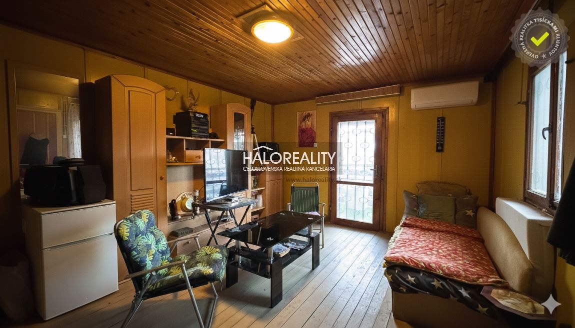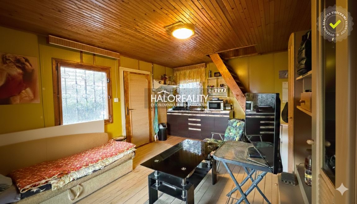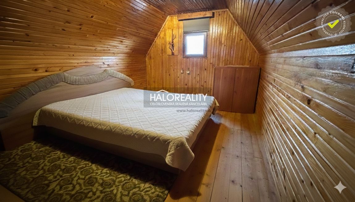 2. podlažie: Prístupné dreveným schodiskom, vyhradené ako nočná časť s priestorom na spanie pre 3 až 4 osoby (podľa predstáv nového majiteľa). Exteriér: Zastrešená terasa s posedením pred vstupom do objektu. Zadná časť za chatkou je využitá na toaletu a samostatnú dreváreň.STAV NEHNUTEĽNOSTI:Objekt bol postavený v roku 1989. Má murované základy a drevenú nadzemnú konštrukciu. Strecha je pokrytá plechovou krytinou. Chatka je udržiavaná a vybavená novou klimatizáciou. Orientácia objektu a pozemku je na severovýchod.