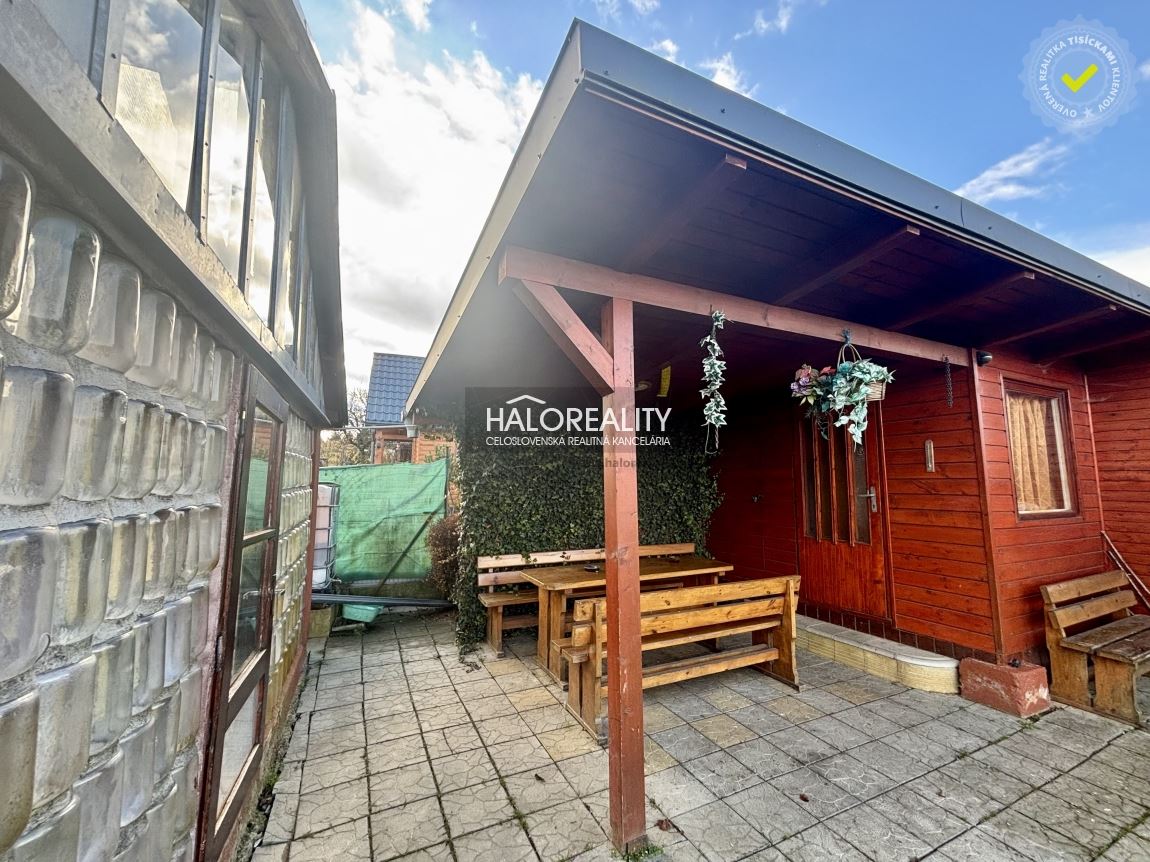 Záhradná chatka s terasou, cez ktorú sa dostanete do vstupnej chodbičky a obytnej miestnosti, Vám poskytne oddych a úkryt pred ostrými slnečnými lúčmi alebo dážďom.VÝHODY:- udržiavaný pozemok s terasou vhodný na aktívny relax,