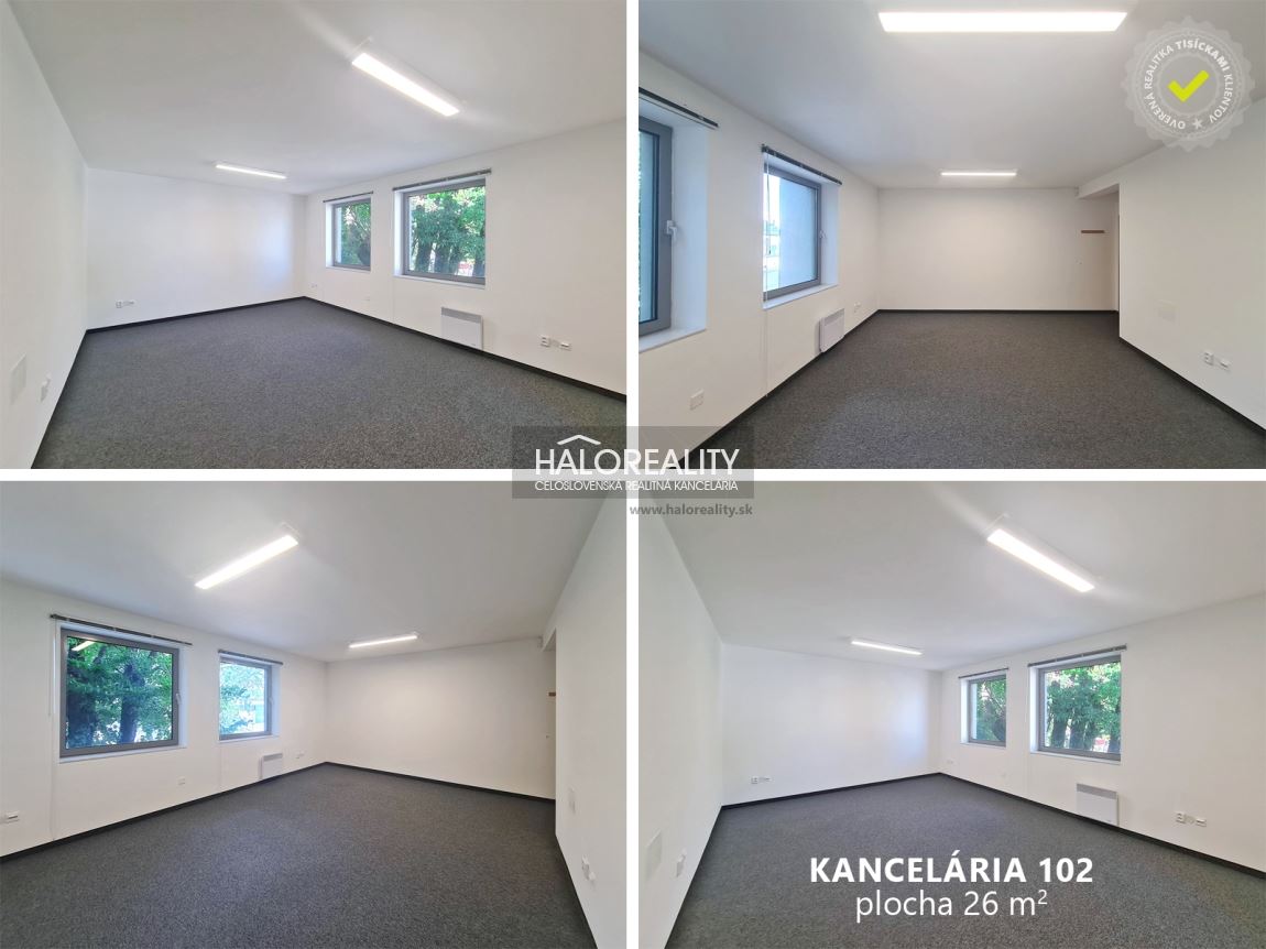 PROVÍZIU NEPLATÍTE!DISPOZÍCIA:2 kancelárie jedna s plochou 26 m² a druhá s plochou 33 m² svetlá s oknami na dvoch stenách po celej ploche. Dispozíciu si pozrite na 3D pôdorysoch vo foto-galérii. Zdielané sú aj spoločné priestory (WC)STAV NEHNUTEĽNOSTI:Veľmi dobrý vrátane vybavenia.VÝHODY:Rýchly prístup na vnútorný diaľničný obchvat Bratislavy D2, blízkosti sa nachádza železničná stanica Bratislava-Lamač, ale aj zástavky MHD. Neďaleko (cca 5 minút autom) je aj je nákupno-zábavné centrum Bory Mall.NÁZOR MAKLÉRA:Odporúčam firmám, ale aj menším živnostníkom. Ideálne pre zriadenie: advokátskej, účtovnej alebo realitnej kancelárie, Notár..."Ideálne pre zriadenie: advokátskej, účtovnej alebo realitnej kancelárie, Notár"