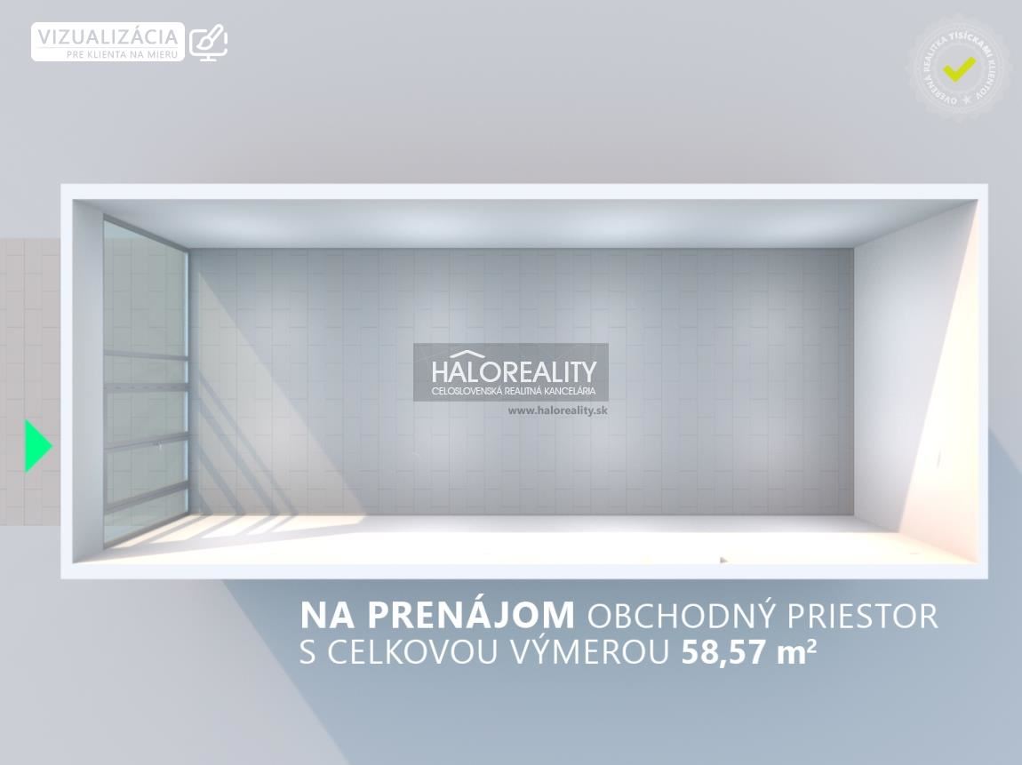 Ku všetkým priestorom platí, že vlastník je schopný na základe dohody s nájomcom, sa podieľať na čiastkových nákladoch, kde to bude naozaj nutné (napr. dlažba / prípojka vody a pod.). DISPOZÍCIA:Obchodný priestor s celkovou výmerou 58,57 m² pozostáva z 1 miestností - z predajne. Je vybavený klimatizáciou, má veľký výklad so vstupom do predajne na čelnej strane smerom do komunikačnej haly pre návštevníkov (pozrite si 3D pôdorys v galérii). VÝHODY:Prevádzka v takomto obchodnom dome prináša viacero výhod: