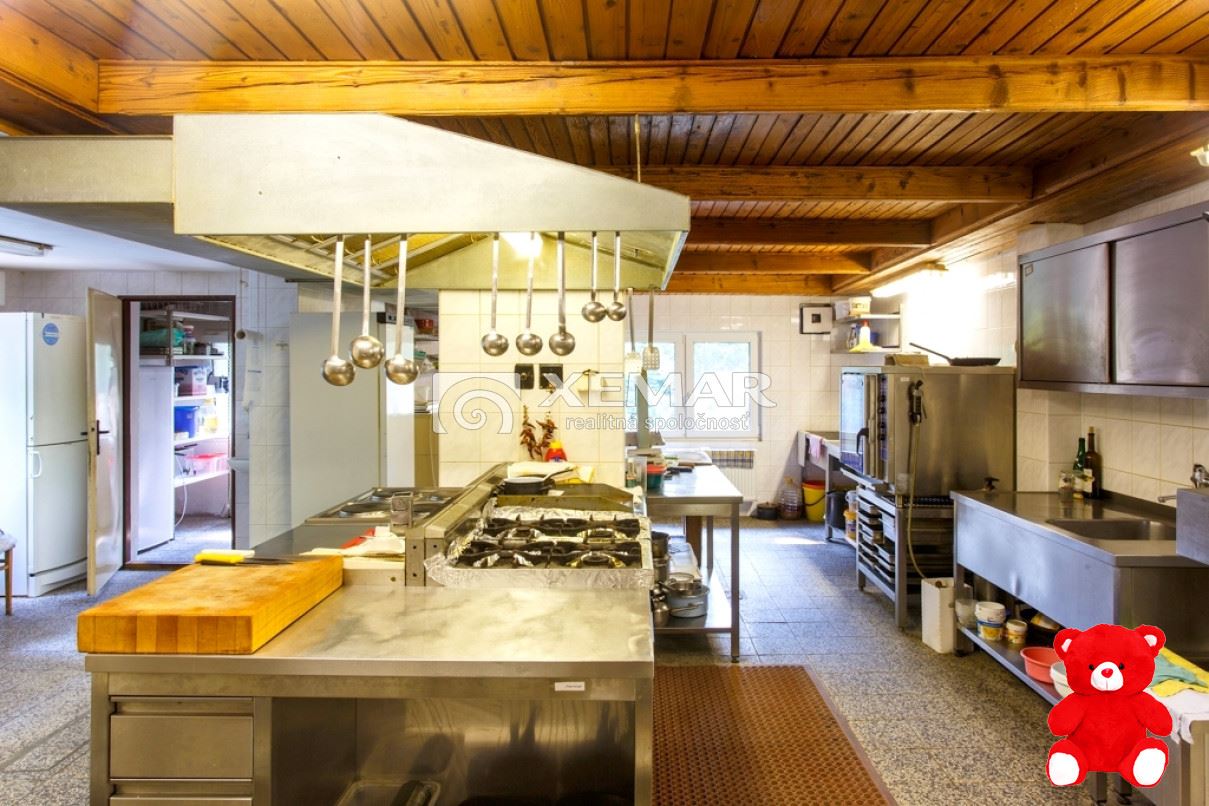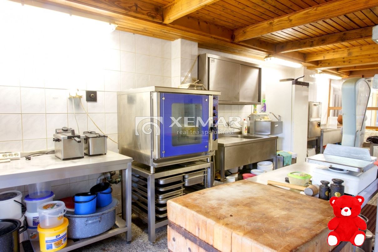 Tento dvojpodlažný objekt, postavený na mierne svahovitom pozemku o rozlohe 1 546 m², je ideálny na prevádzku reštaurácie, organizovanie spoločenských akcií, ale aj rozšírenie o ďalšie podnikateľské aktivity, ako je požičovňa elektrobicyklov alebo iné športové atrakcie. Lokalita je obľúbená pre turistiku, cykloturistiku, lyžovanie, bežkovanie. Blízkosť vleku či futbalového ihriska.Kapacity a vybavenieReštaurácia:50 miest na sedenie.Spoločenská miestnosť: Kapacita 70 osôb, využiteľná až pre 90 účastníkov pri akciách s tanečným parketom.Podkrovie: Dve útulné izby, ideálne na ubytovanie hostí alebo personálu, s možnosťou ďalšieho rozšírenia obytných priestorov.Interiér:obojstranným krbom a grilomExteriér: Vlastné parkovanie a veľká terasa.Technické parametreStavba je po rekonštrukcii z roku 2002, modernizácie interiéru aj technických zariadení.Vykurovanie: kombinácia elektrického kotla, kotla na propán-bután a krbu s teplovzdušnou vložkou.Fotovoltické panely zabezpečujú energetickú sebestačnosť s ročnou produkciou až 9 000 kW.Voda: verejný vodovod.Kanalizácia: septik.Internet: vysokorýchlostná optická sieť.Dispozícia objektuPodpivničenie: Skladové priestory a kotolňa.Prízemie: Reštauračné priestory s barom, kuchyňou a hygienickým zázemím pre hostí aj personál.Podkrovie: Dve samostatné izby na prenájom s možnosťou ďalšieho rozšírenia obytných priestorov.Výhody prenájmuLokalita s vysokým turistickým potenciálom.Plne zariadené a pripravené na okamžitú prevádzku.Možnosť rozšírenia kapacít a ďalších aktivít.Dostatočný počet parkovacích miest.Mesačné nájomné: 800 EUR bez DPH + energie.