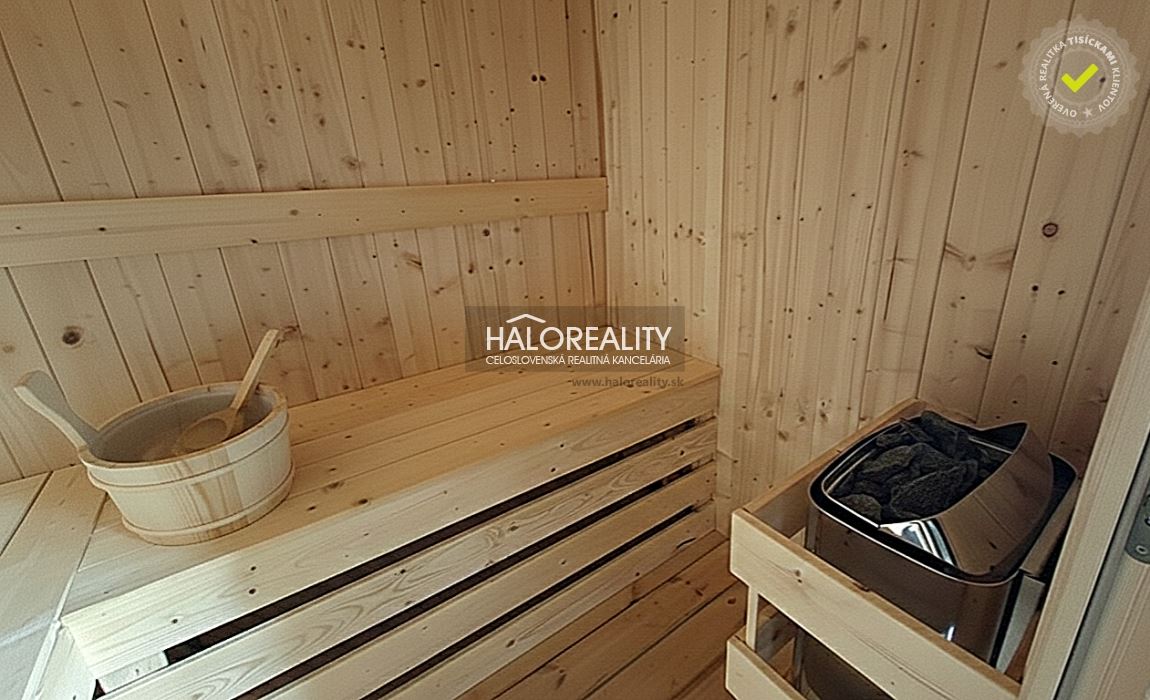 K domu prislúcha aj udržiavaná záhrada, detské ihrisko a privátna sauna.STAV NEHNUTEĽNOSTI:Kolaudácia v roku 2015, nehnuteľnosť je vo vynikajúcom, udržiavanom staveVÝHODY:Exteriérová fínska sauna priamo v záhrade