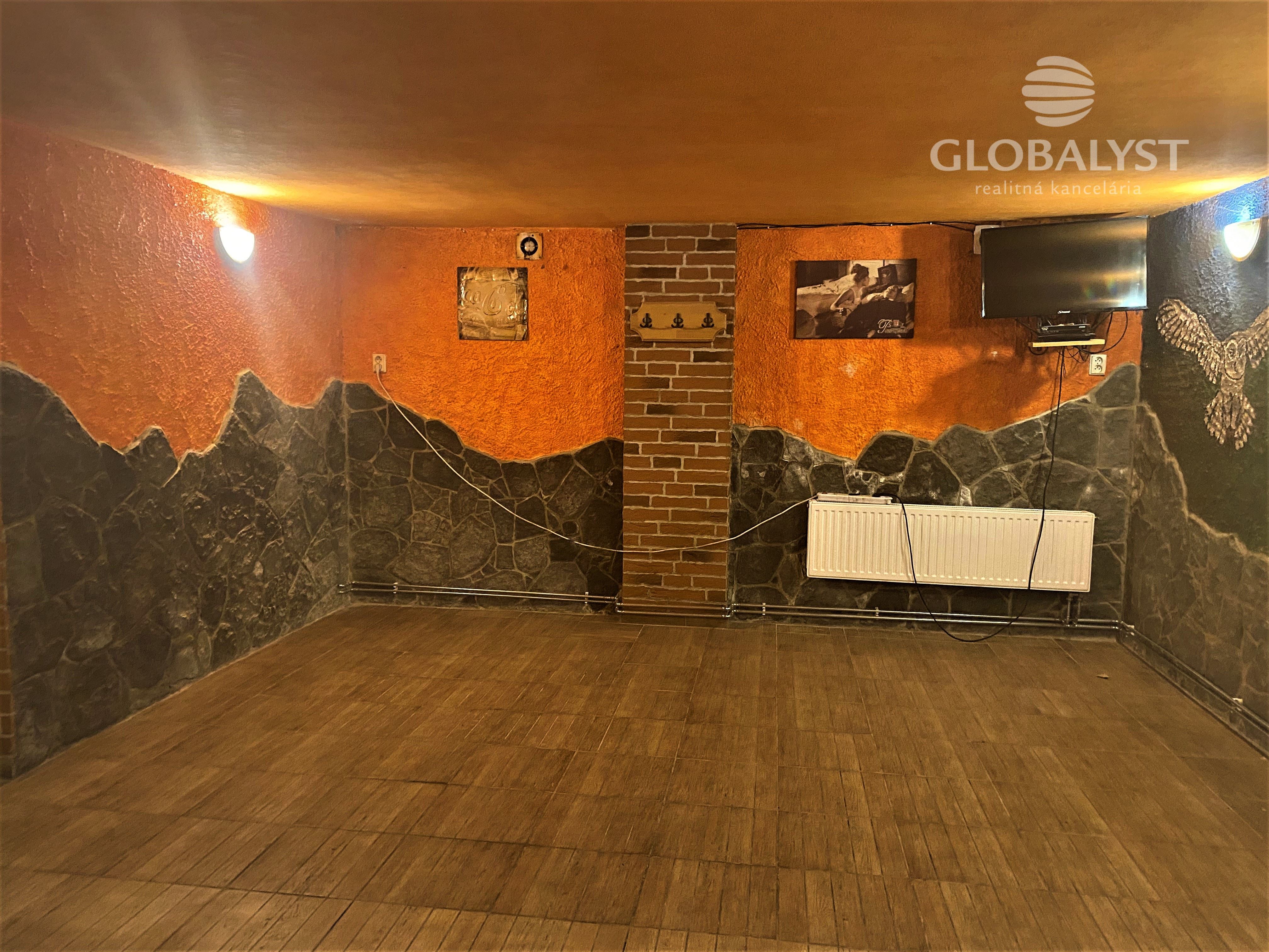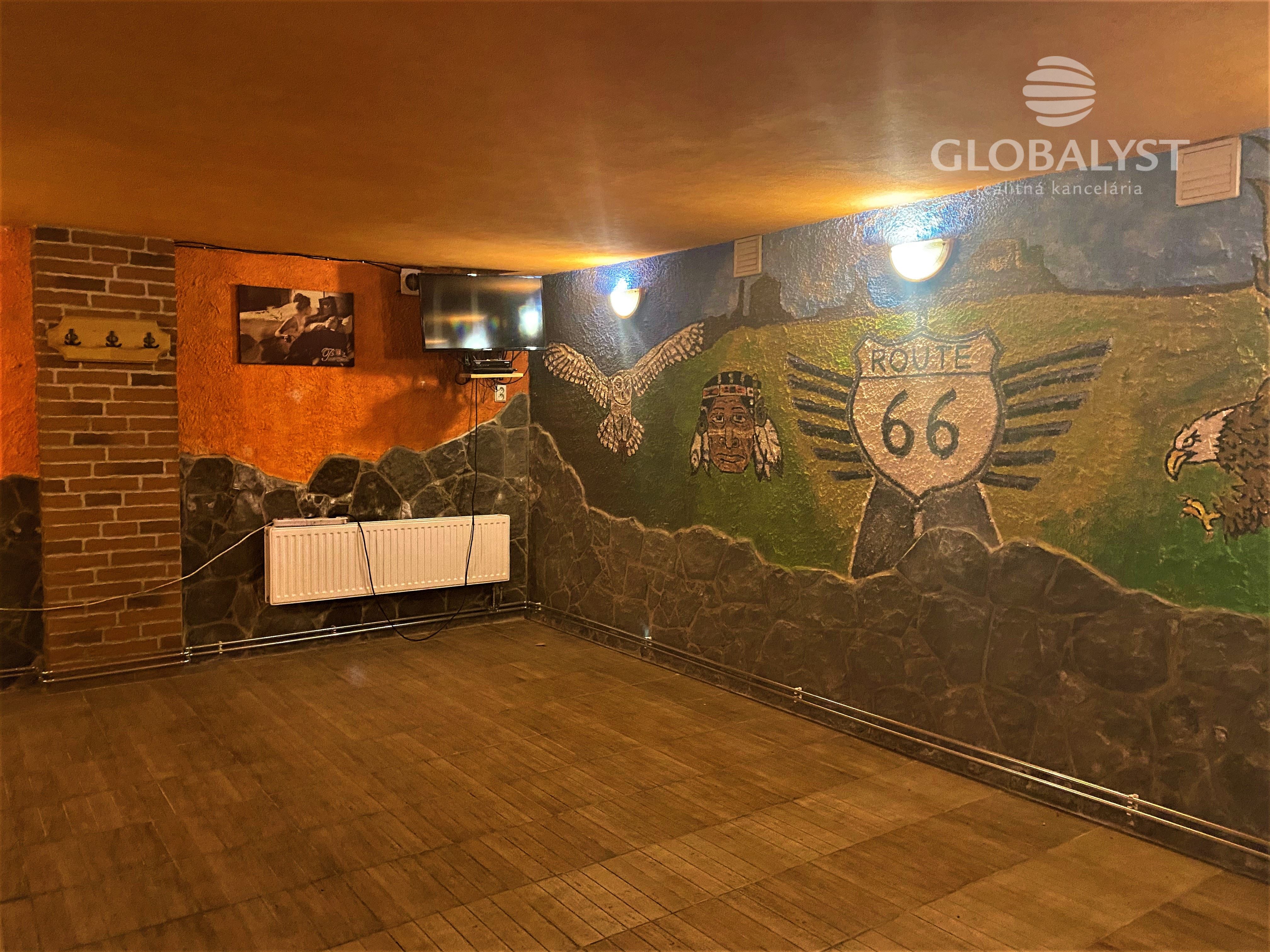 Ponúkame na prenájom priestory s výmerou 70 m2, vhodné na bar. Situované sú v suteréne malého podnikateľského objektu v Mestskej časti Džungľa. Pozostávajú z dvoch väčších miestností, príručného skladu, WC, s možnosťou zriadenia kuchynky. Samostatný vstup do budovy s malou vonkajšou terasou s výmerou 20 m2. Veľmi dobrá poloha s dostupnosťou na mestskú rýchlostnú komunikáciu a diaľničný privádzač. Kúrenie a ohrev vody sú zabezpečené plynovým kotlom. Možnosť parkovania pre klientov pri budove bez poplatkov. Cena prenájmu : 500 Eur/mesiac, bez energií.