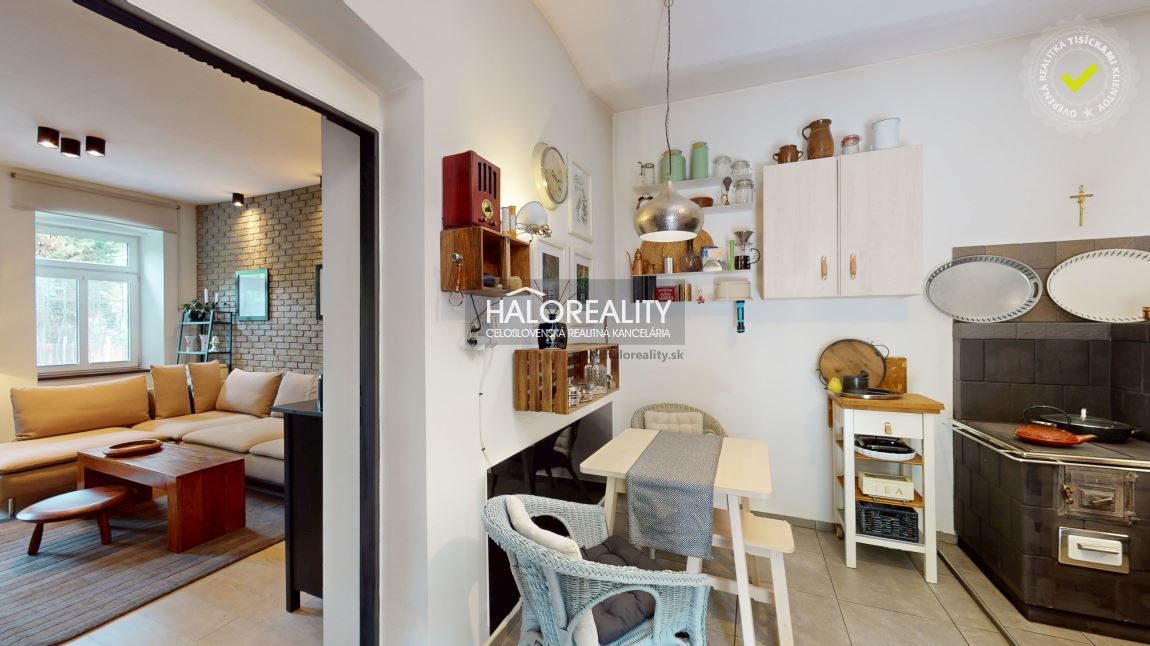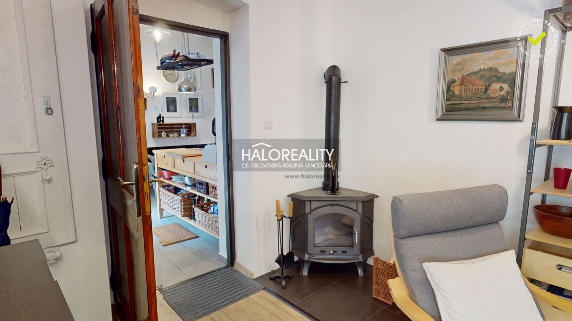 Najviac informácií nájdete priamo na stránke haloreality.sk, virtuálnu prehliadku, video z dronu,...DISPOZÍCIA:Dispozične dom pozostáva z dvoch samostatných vstupov, jeden je v strednej časti a vchádza sa ním do kuchyne a druhý zo zadnej časti pri humne. Zadná časť domu slúži v súčasnosti ako samostatný masážny salón, kde sa nachádza aj WC a kúpeľňa s práčkou a sušičkou. Z tejto časti domu je prechod do spálne, následne do ďalšej izby, kuchyne a veľkej obývačky. Pred vstupom od kuchyne je terasa s posedením a výhľadom na záhradu, okolitá zeleň poskytuje absolútne súkromie a pohladí dušu pi šálke kávy, alebo posedení s priateľmi.STAV NEHNUTEĽNOSTI:Kompletná rekonštrukcia v rámci všetkých rozvodov, do domu je zavedený plyn, má vlastnú fotovoltaickú elektráreň, ktorá pokryje celú spotrebu elektrickej energie, platí sa len distribučný poplatok, prebytok sa ukladá do virtuálnej batérie. Záhrada je pravidelne udržiavaná s diverzifikovanou zeleňou. Aktuálne kúrenie cez infrapanely, ale je napojený aj na plynové pôvodné kúrenie a zároveň sa dá kúriť aj lokálne tuhým palivom v kuchyni a obývačke. Podkrovie je vhodné na zobytnenie, strecha je v dobrej kondícií.