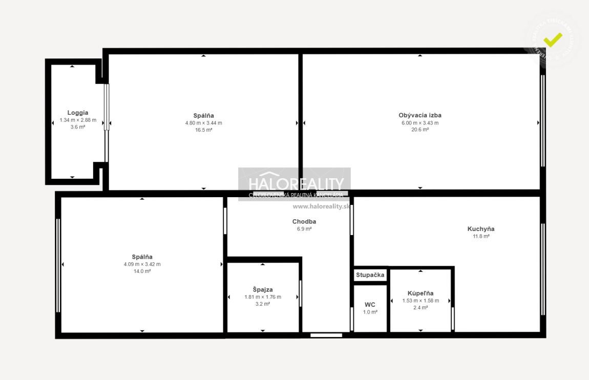 Vľavo vedľa obývacej izby sa nachádza hlavná spálňa, z ktorej je vstup na loggiu (južná orientácia).