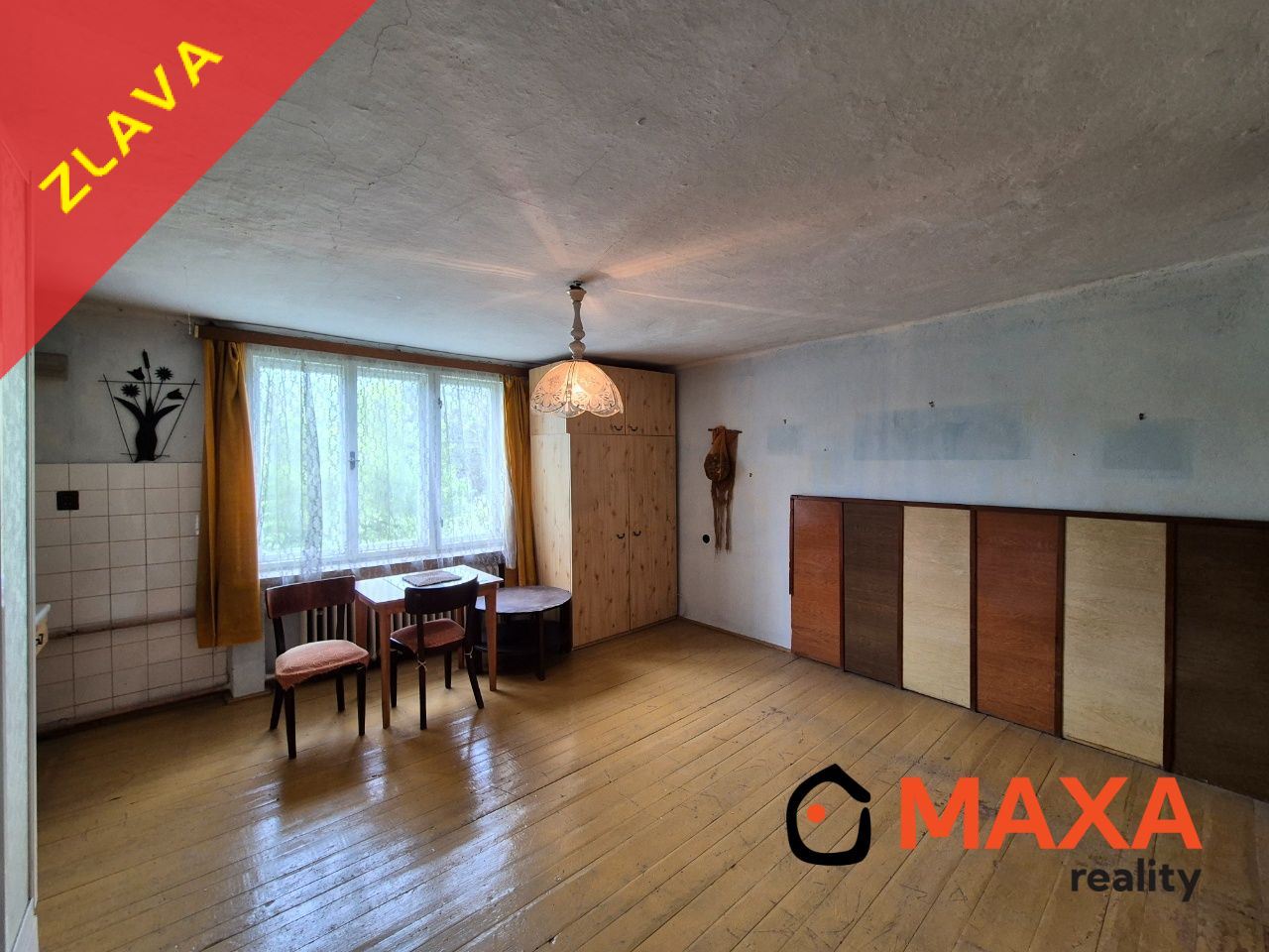 Ponúkame Vám na predaj rodinný dom neďaleko centra mesta Handlová na ulici Novomeského. Dom je postavený na pozemku o celkovej výmere 774m2 so zastavanou plochou 152m2. Dom je celý v pôvodnom stave a vyžaduje rekonštrukciu. Dom je samostatne stojací s 1 nadzemnými podlažím, s čiastočne využitým podkrovím a je čiastočne podpivničený. Strecha je valbová s pôvodnými trámami a so škrídľou. Stavba je postavená z tehál hrúbky 40-50cm, vnútorné omietky sú vápenné štukové, stropy s rovným podhľadom drevené trámové. Dom je napojený na všetky IS. Na pozemku sa nachádza garáž a ovocné stromy.