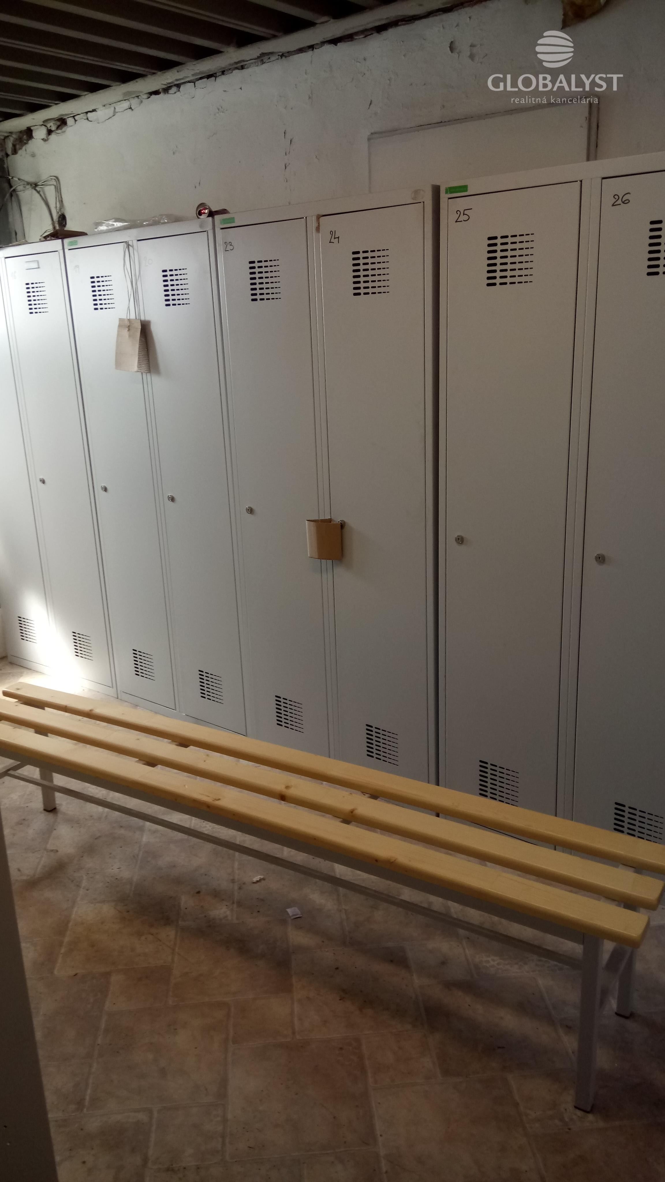 V budove na poschodí sú šatne a sociálne zariadenia s výmerou 45 m2.